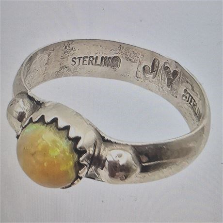 Jason Yazzie Navajo Sterling and Opal Ring, Size 6 [VC]