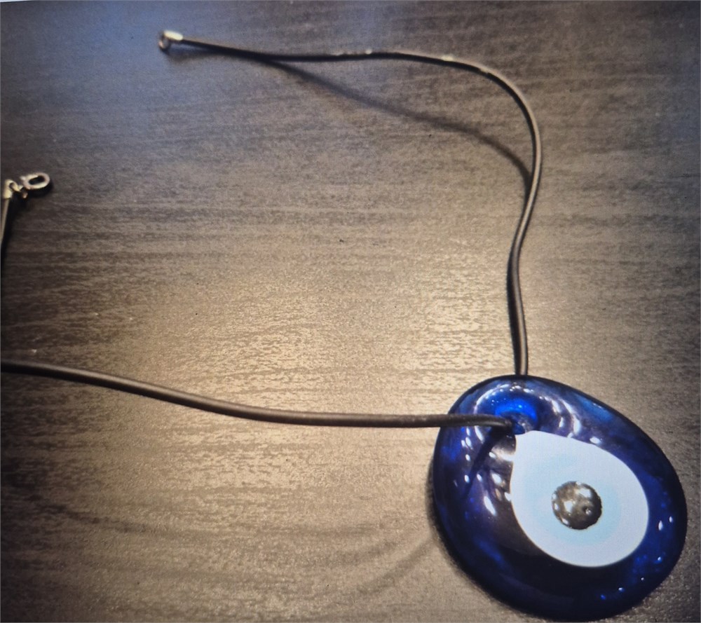 The product is a stunning vintage estate signed 925 large glass evil eye 16" necklace. This unique necklace features a large glass evil eye pendant on a 16-inch chain, showcasing a classic and stylish design. The vintage piece is signed 925, indicating its quality and authenticity, making it a valuable addition to any jewelry collection.