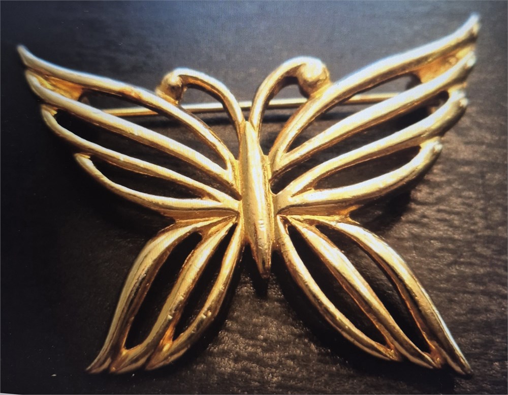 VINTAGE ESTATE GOLD TONE BUTTERFLY 1 7/8" BROOCH! [VC]