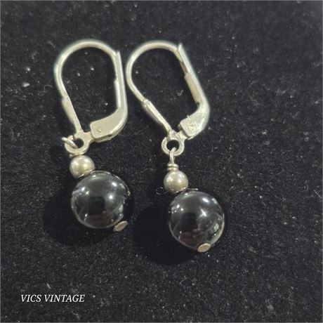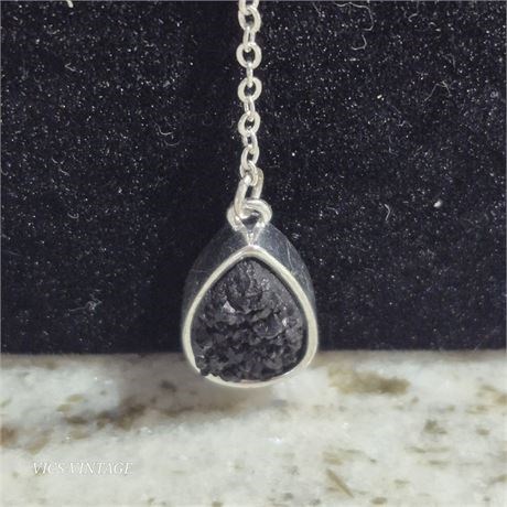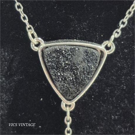 Black DRUZY stone Necklace & 2 Earrings Coord.