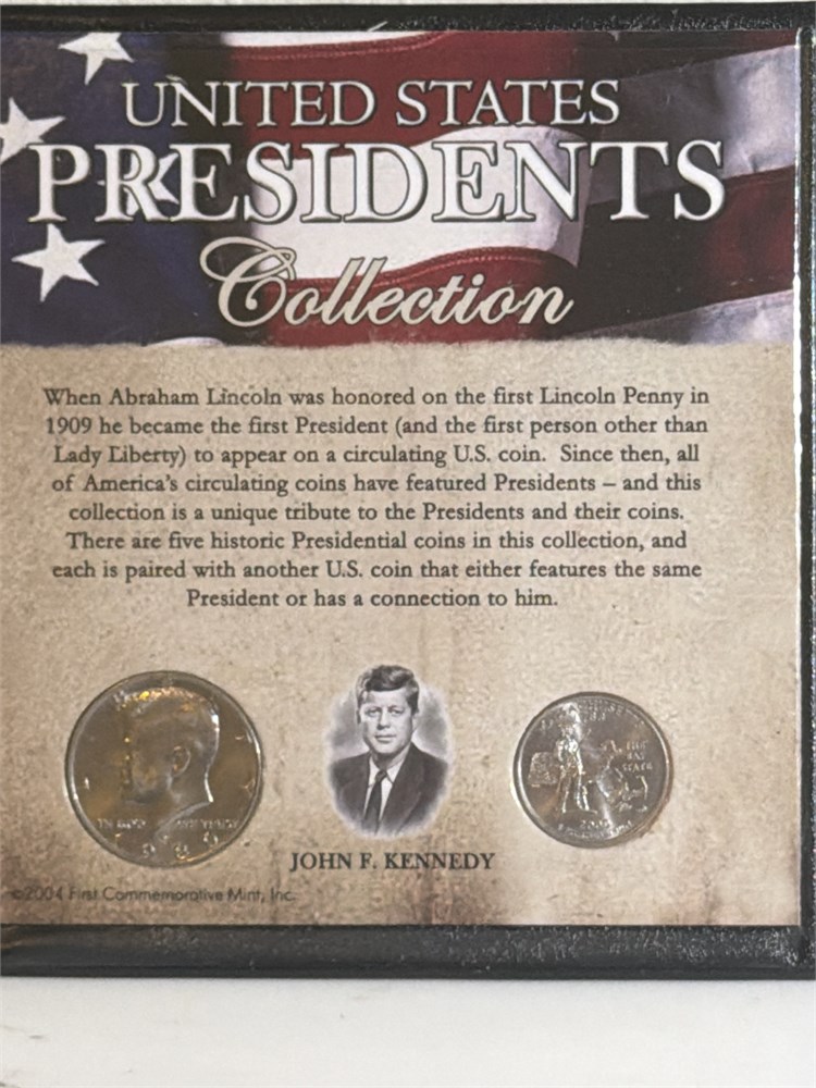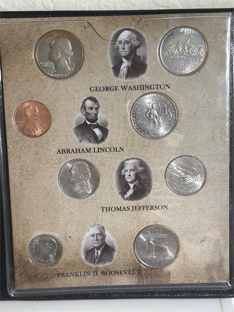 John F. Kennedy, George Washington, Abraham Lincoln, Thomas Jefferson and Franklin D Roosevelt half dollars quarters nickels dimes a penny, all uncirculated