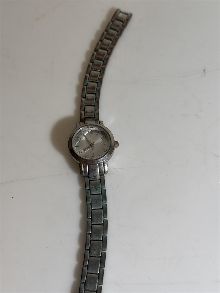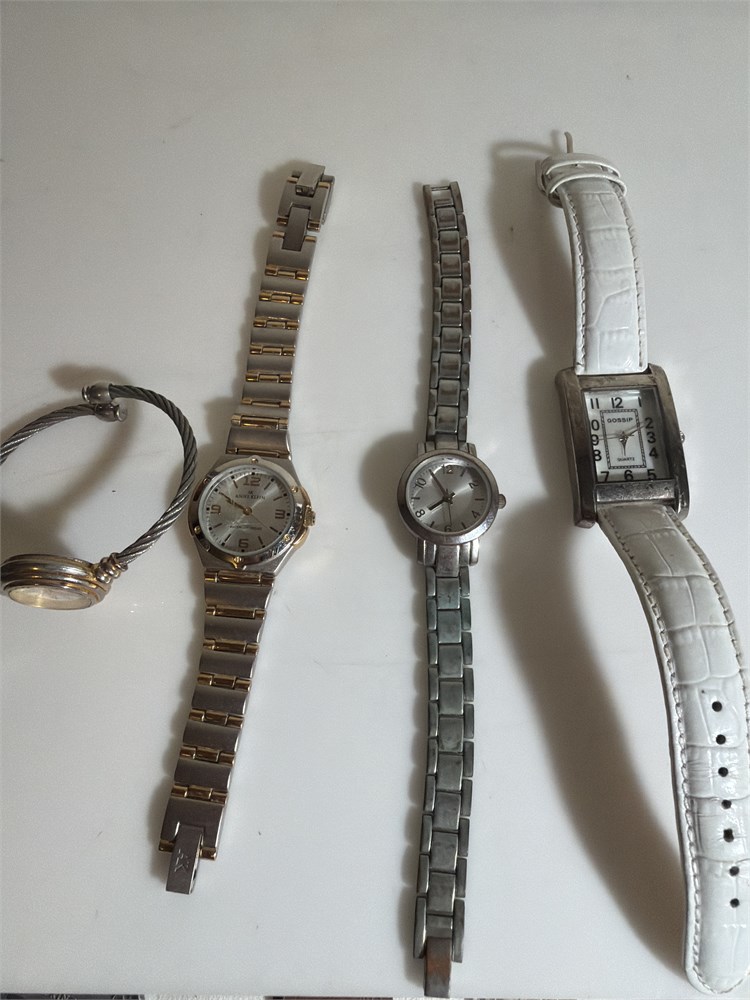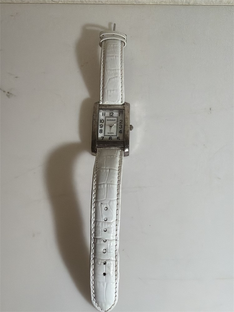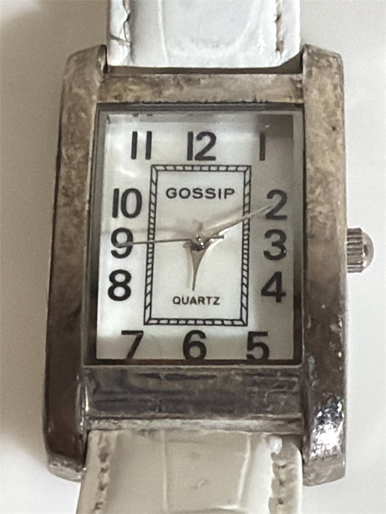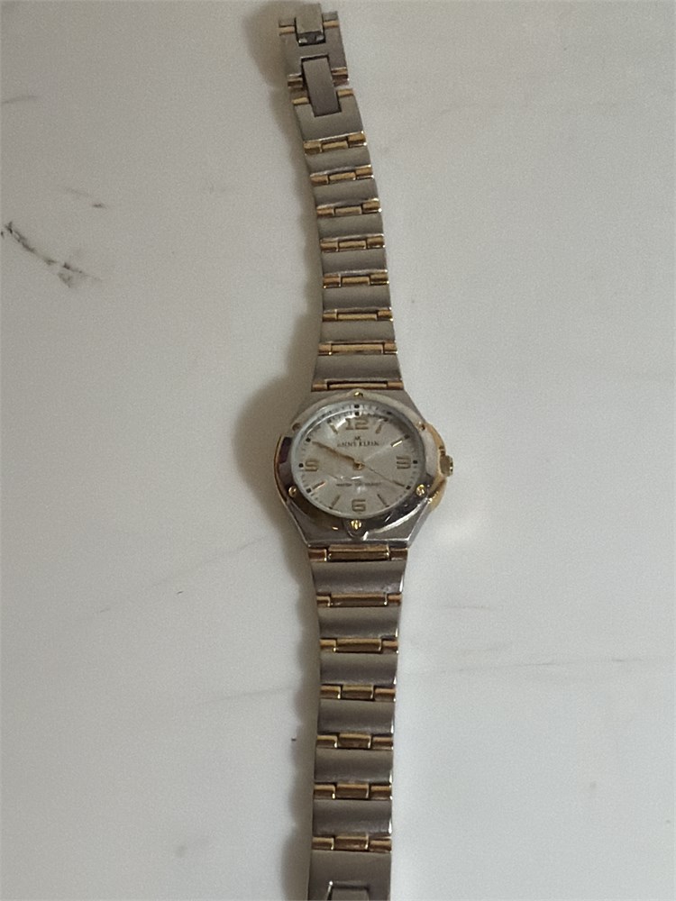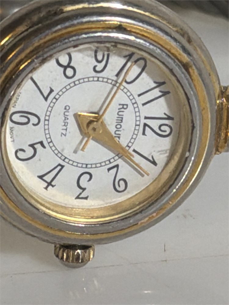 Two tone golden silver, RUMOUR Quartz, Two tone golden silver, Anne Klein , Silvertone dress watch and leather white band gossip Silvertone