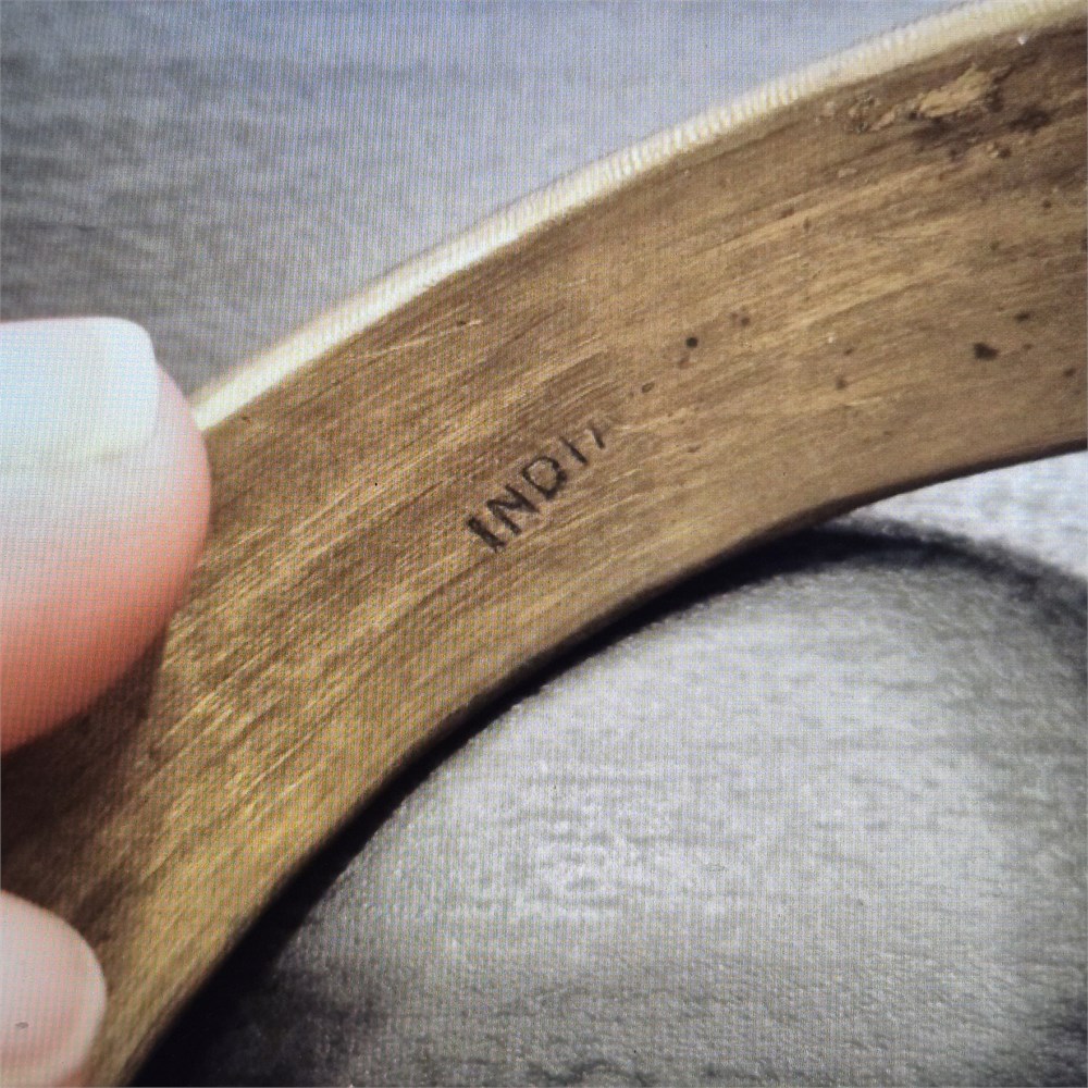 This vintage estate signed India inlaid turquoise bangle bracelet measures 7 3/4" in diameter.
