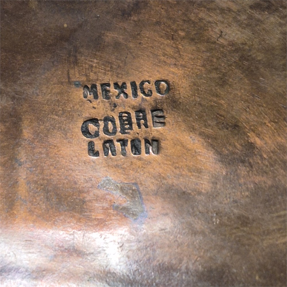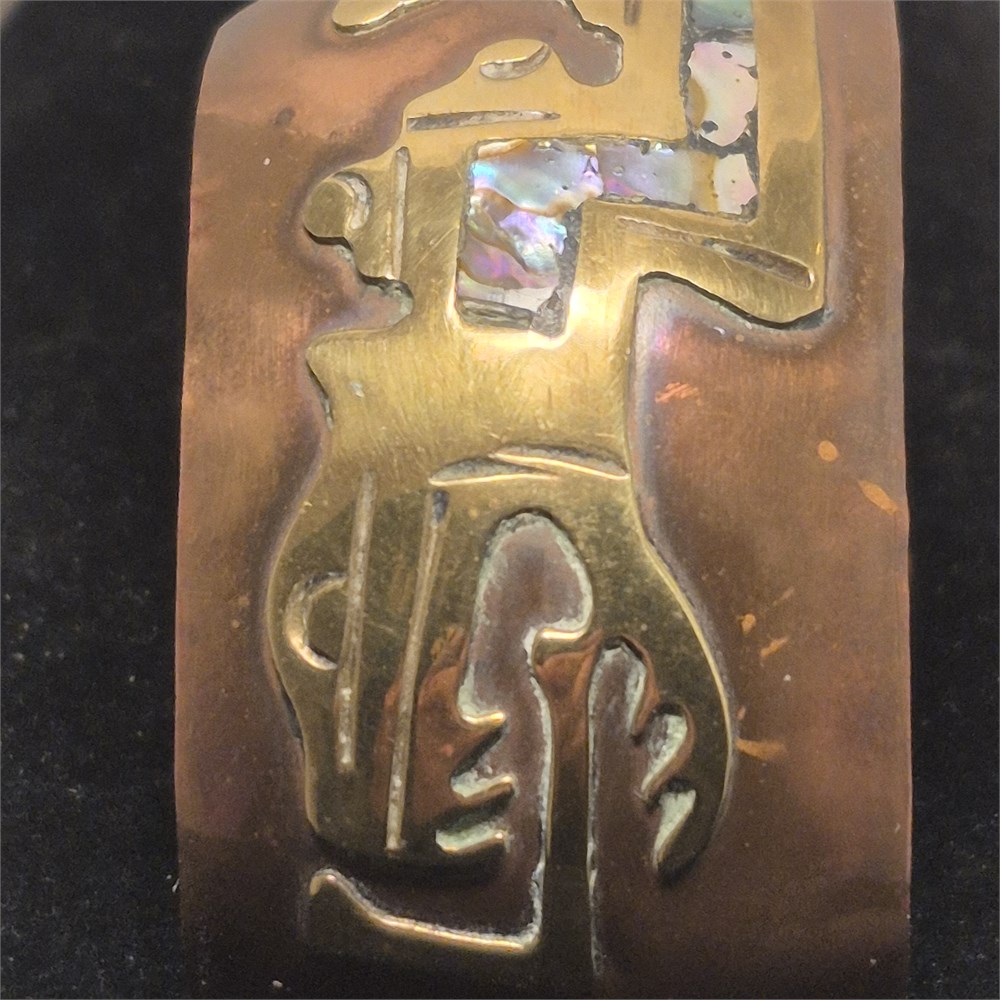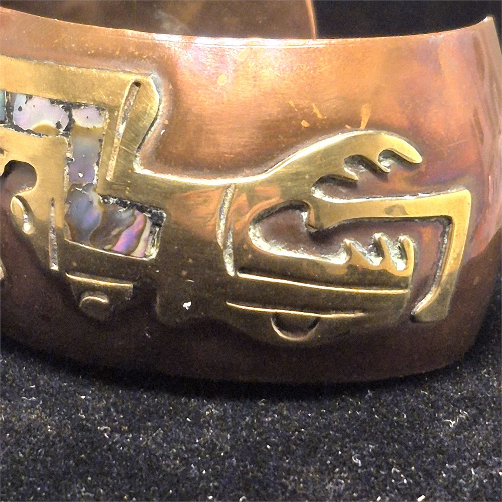 VTG. Copper & Brass Cuff ~ Aztec Dragon w/ Pearl Inlay [VC]