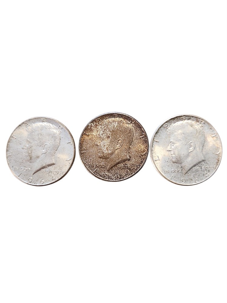 3 ~ 1964 90% Silver Kenndey Half Dollars
