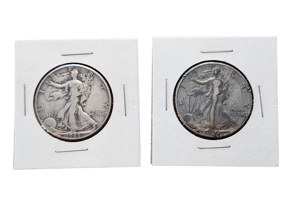 2 ~ 1945 & 1944 Walking Liberty Half Dollars