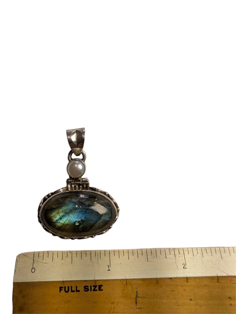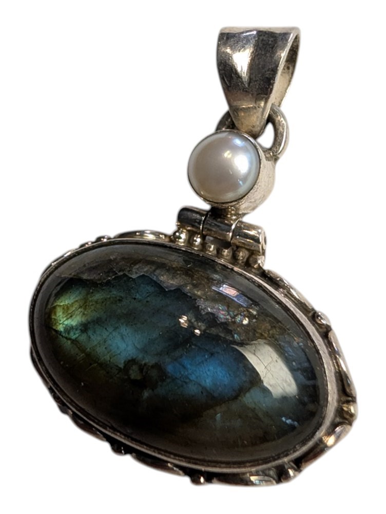 Sterling Silver Labradorite & Pearl Pendant ~ 9 Grams