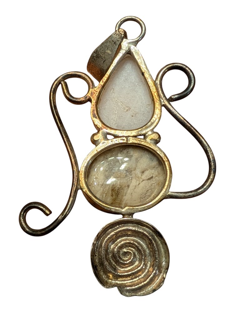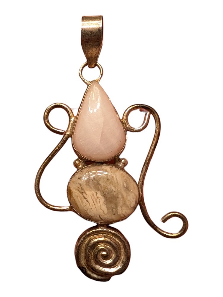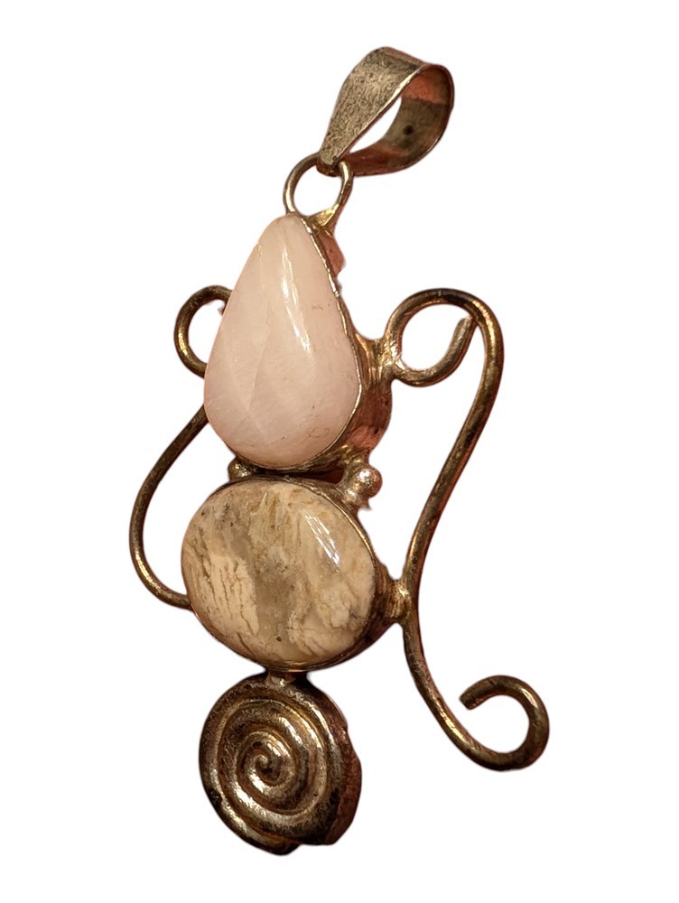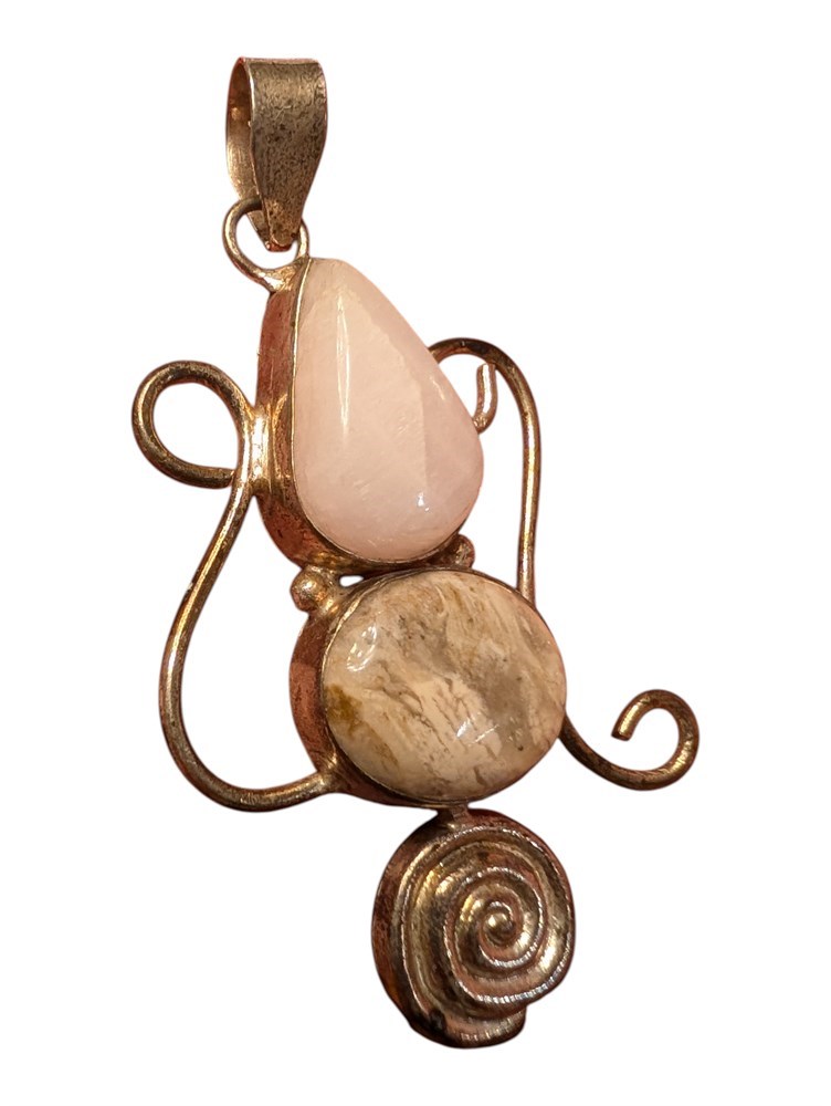 Sterling Silver Pendant Rose Quarts & Agate ~ 14.2 Grams