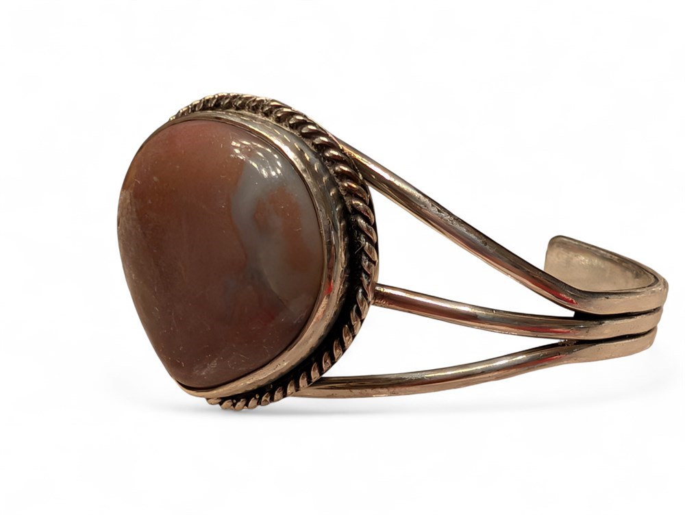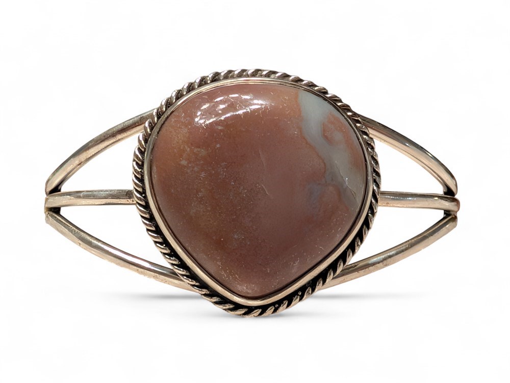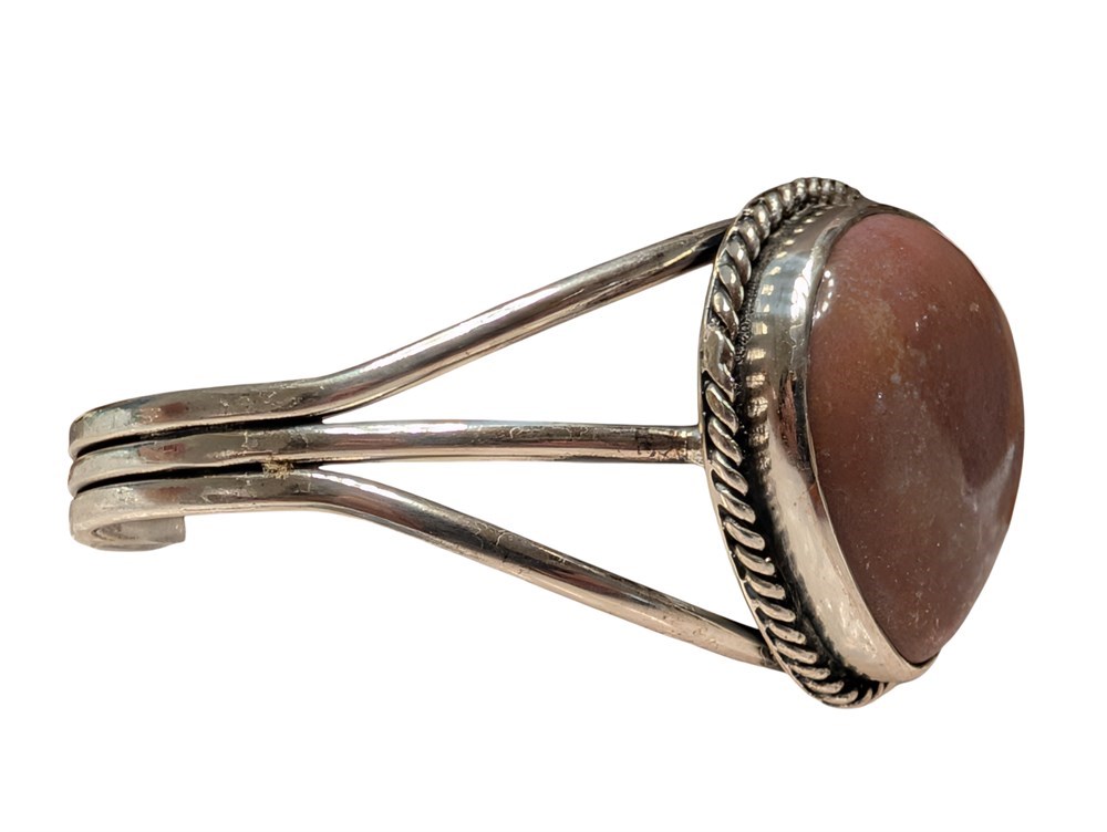 Sterling Silver Native Bangle Pink Agate ~ 43.1 Grams