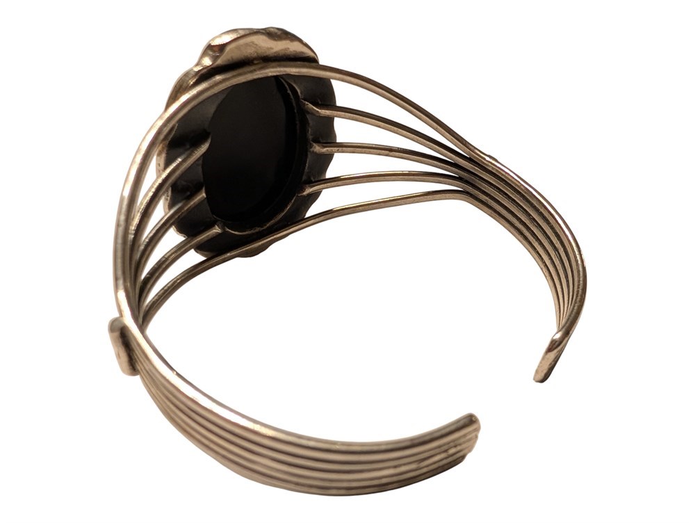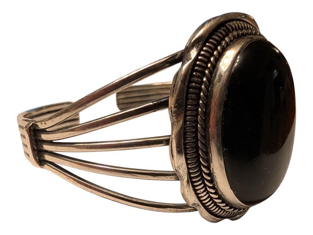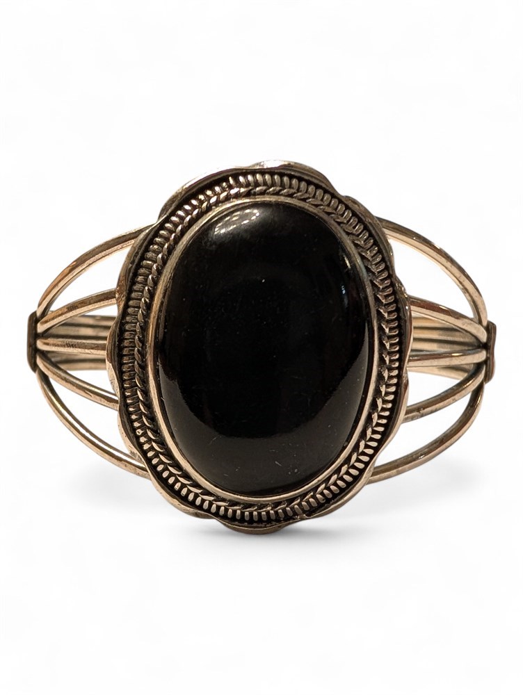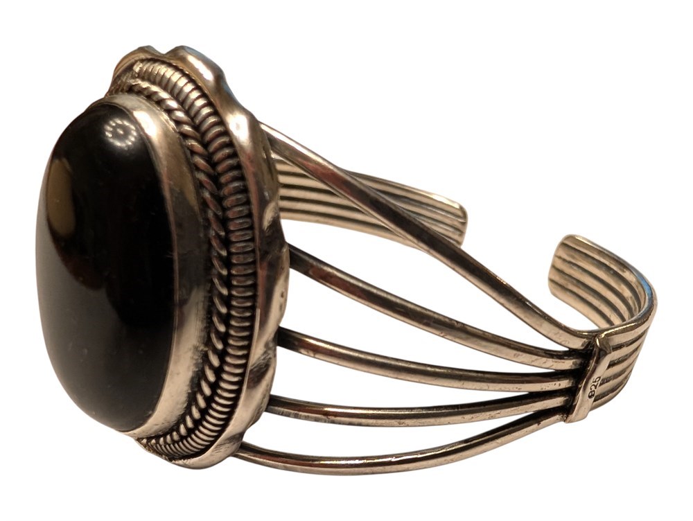 Sterling Silver Onyx Bangle ~ 40.7 Grams