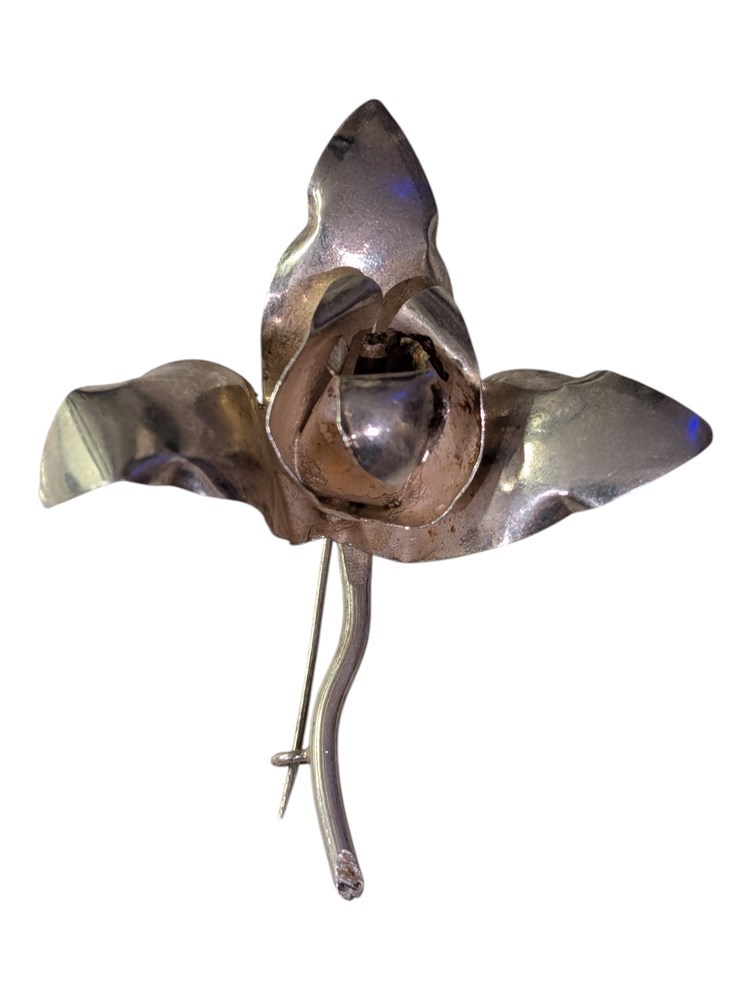 Pair of Sterling Brooches Orchid & Victorian Lady ~ 17.9