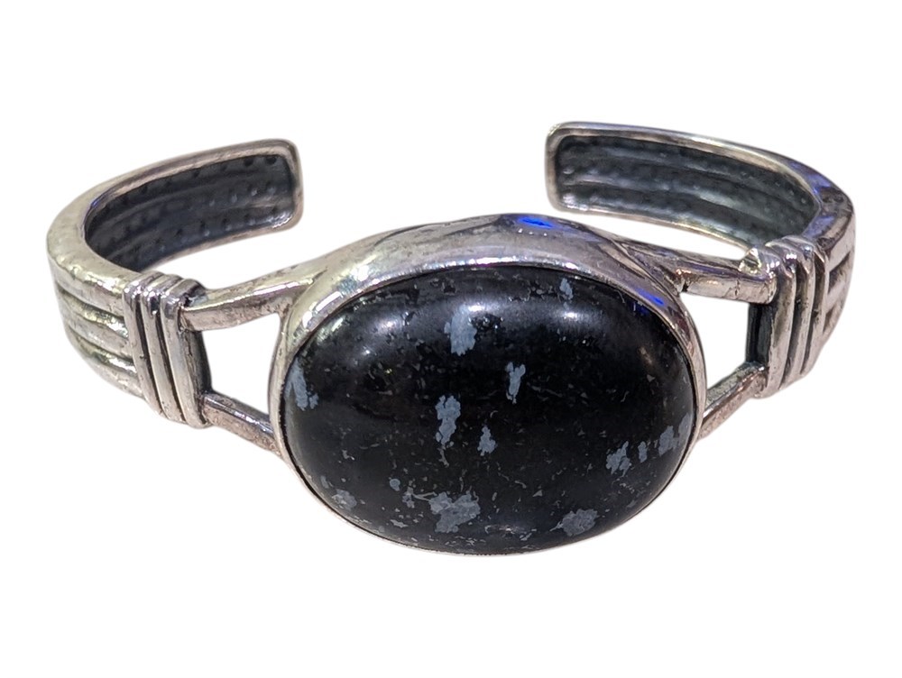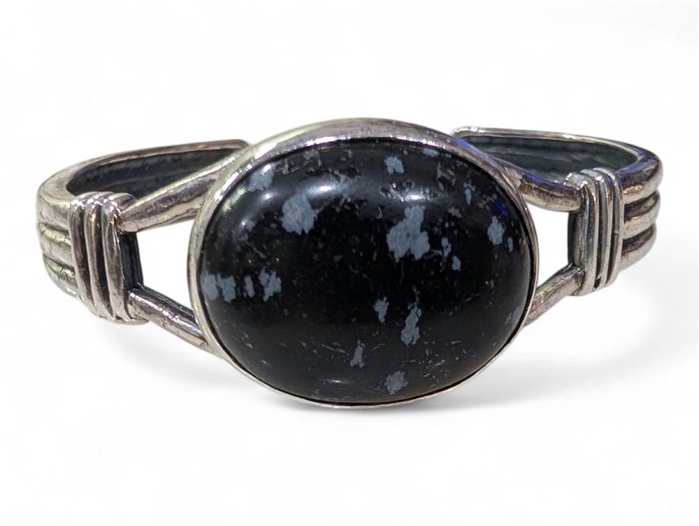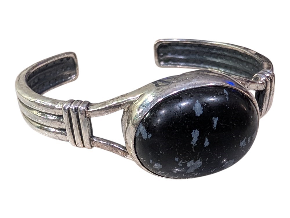 Sterling Silver Bangle Snowflake Obsidian ~ 28.2 Grams