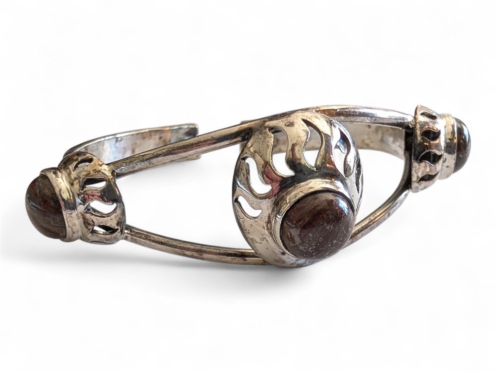 Sterling Silver Bangle Native American Tiger Eye Stones~ 30 Grams