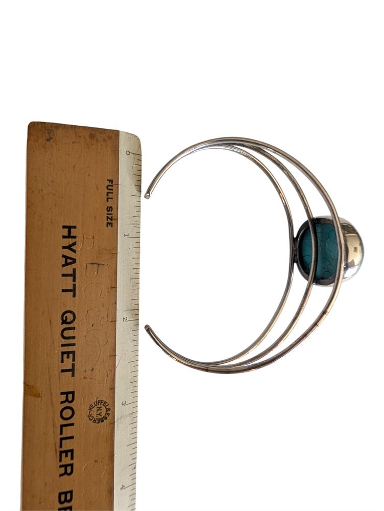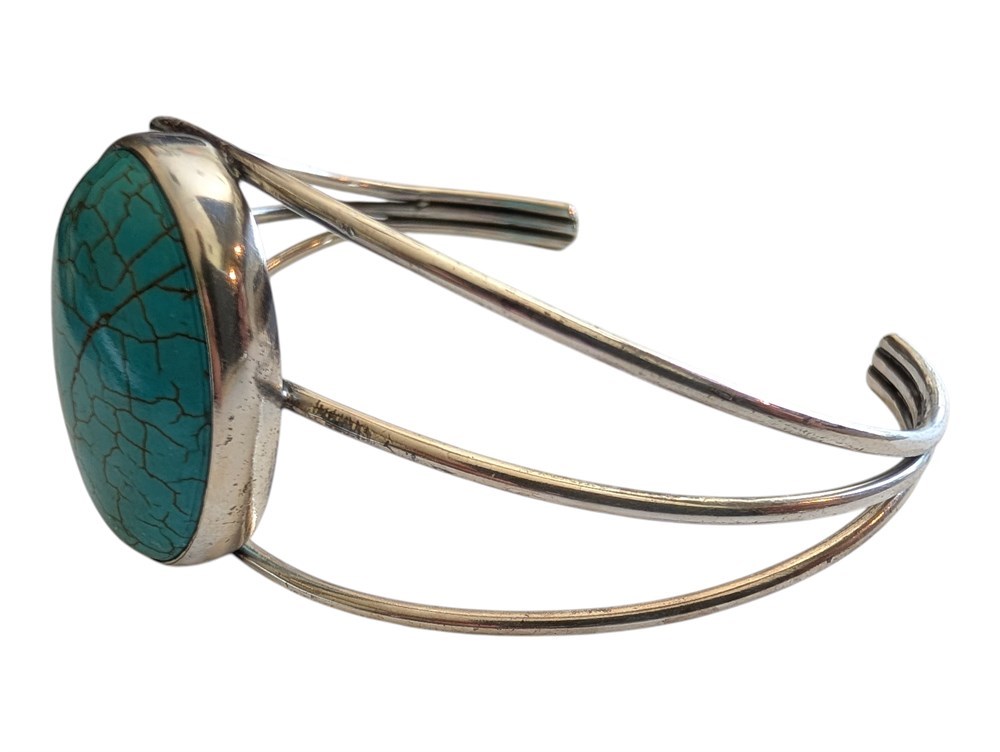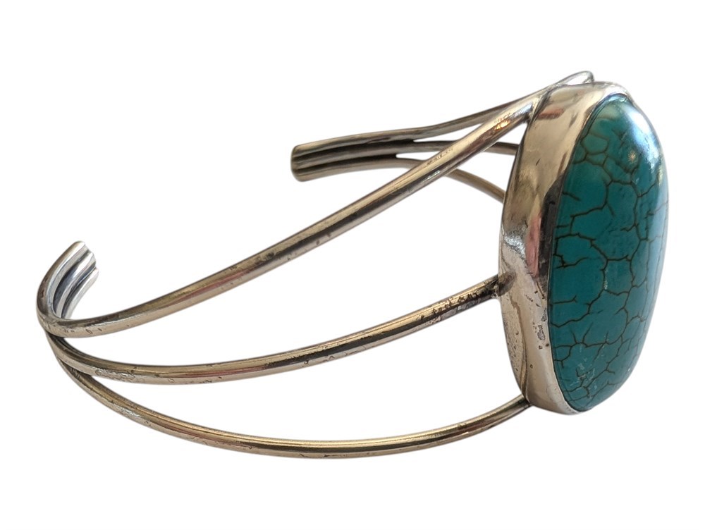 Sterling Silver Bangle Faux Turquoise ~ 21.2 GramsWidth 2.75"