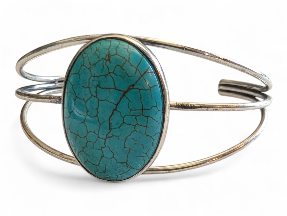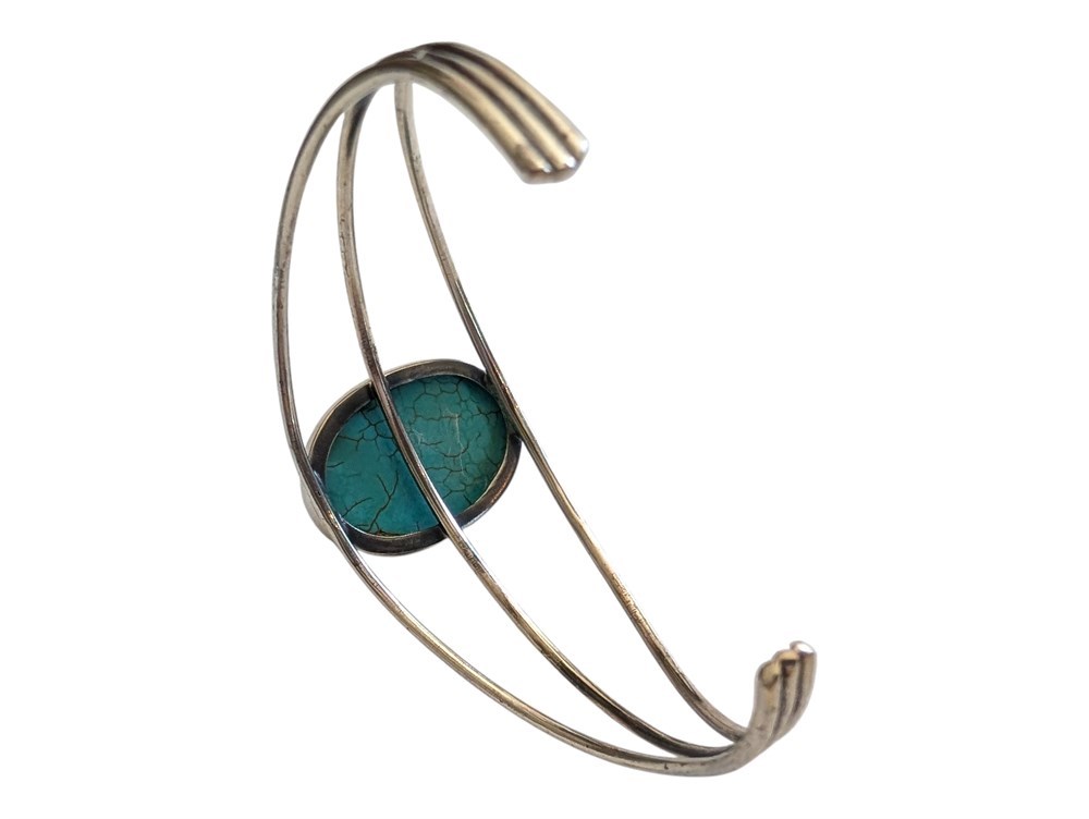 Sterling Silver Bangle Faux Turquoise ~ 21.2 Grams