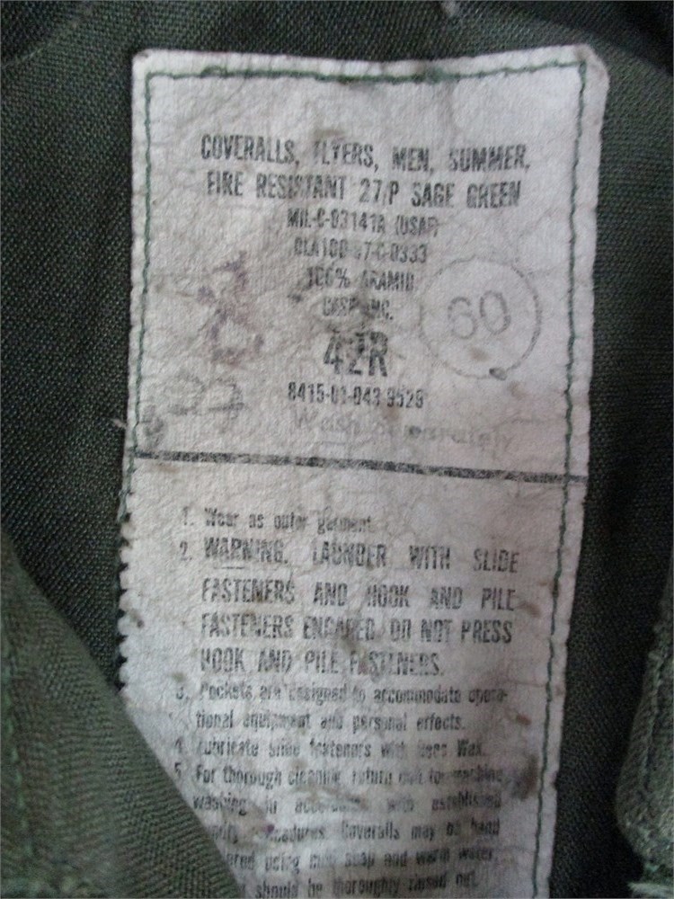 Vintage, US Army, Green Coverall's Flyer's, Summer, Fire Resistant