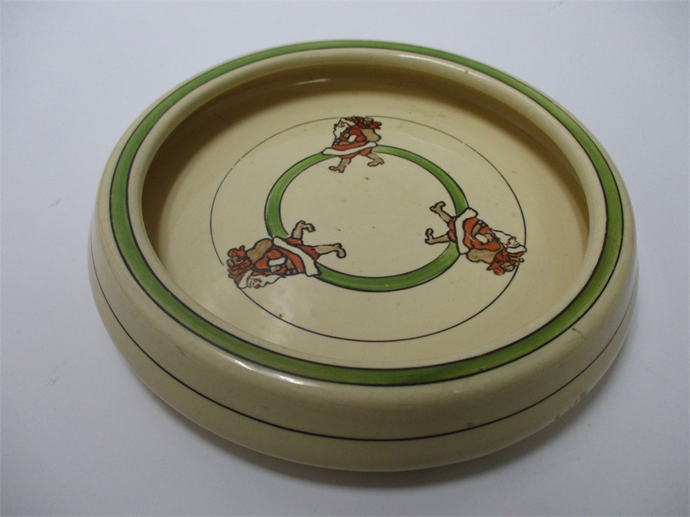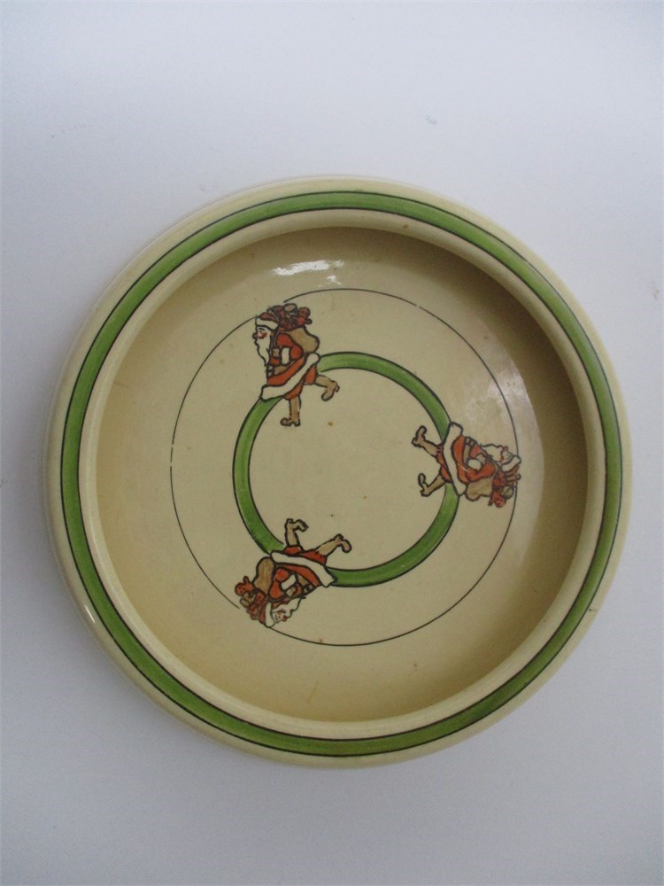 A vintage, Roseville, Child's Rimmed Dish/Plate, Santa. Good Vintage condition and measures 7.75" across, hallmarked.