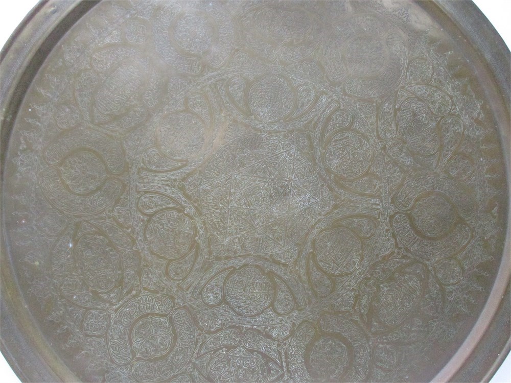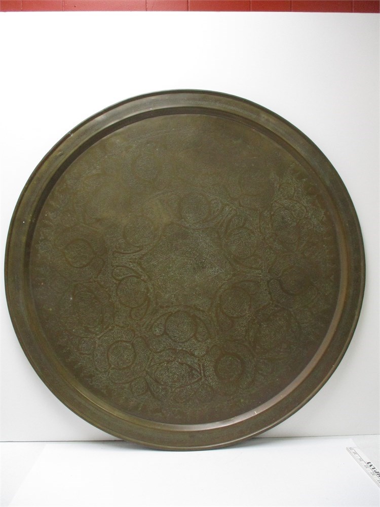 A Large, Antique/Vintage, Syrian Copper Plate Charge, Large and Hand-Etched.  It measures 32" in diameter. Wonderful patina and condition.