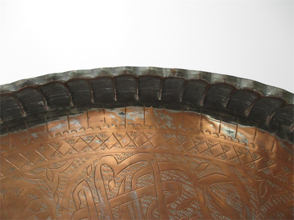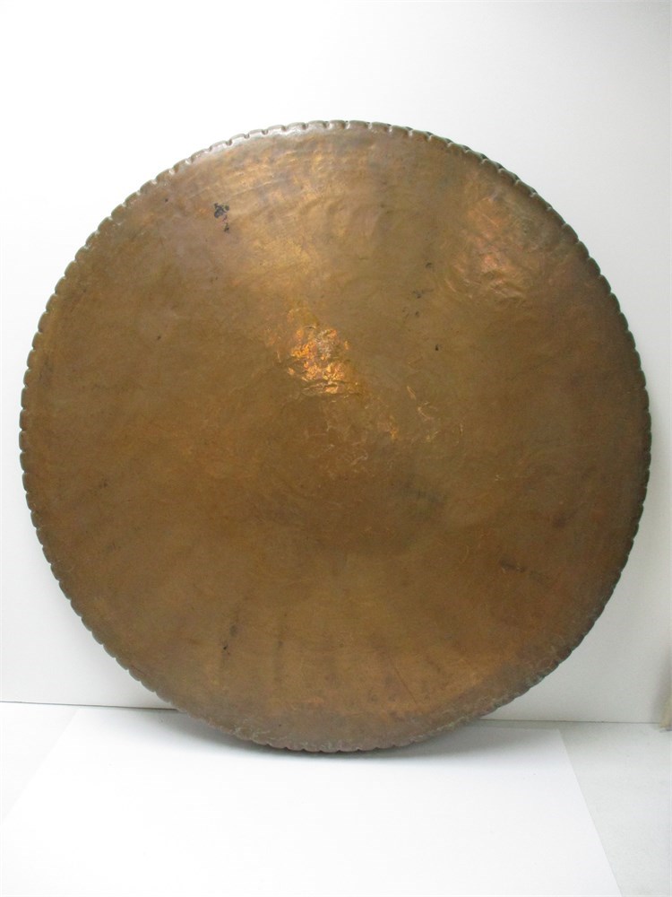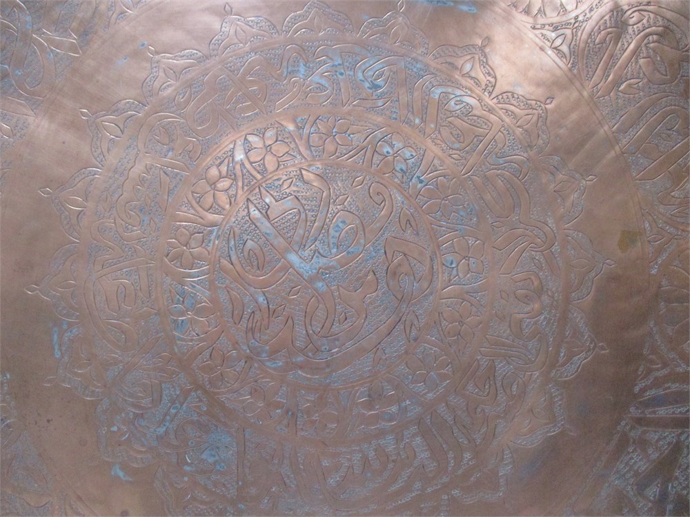 A Large, Antique/Vintage, Persian Copper Plate Charger, Large and Hand-Etched.  It measures 33" in diameter. Wonderful patina and condition.