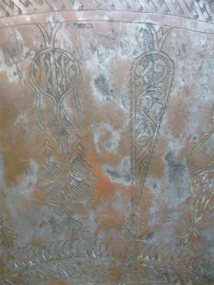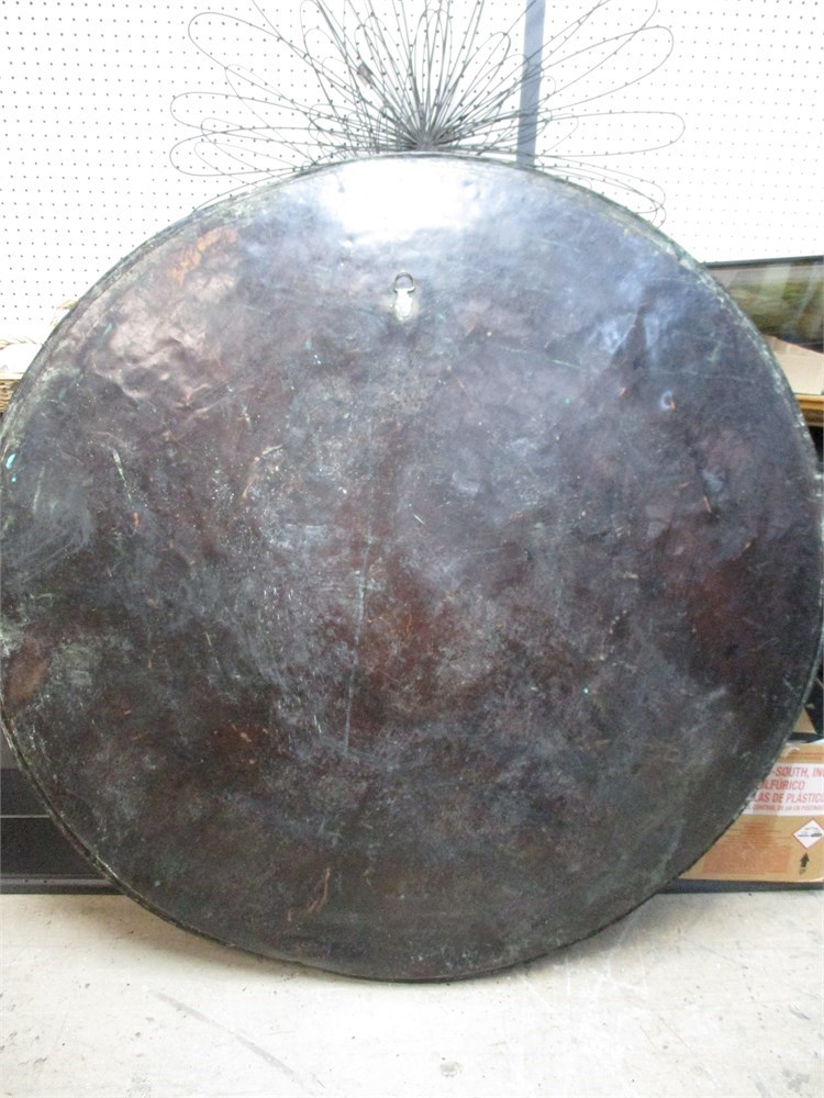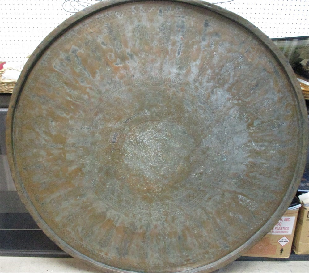 A Large, Antique/Vintage, Middle Eastern, Ottoman Empire Copper Plate Charger, Large and Hand-Etched.  It measures 54" in diameter. Wonderful patina, design and condition.