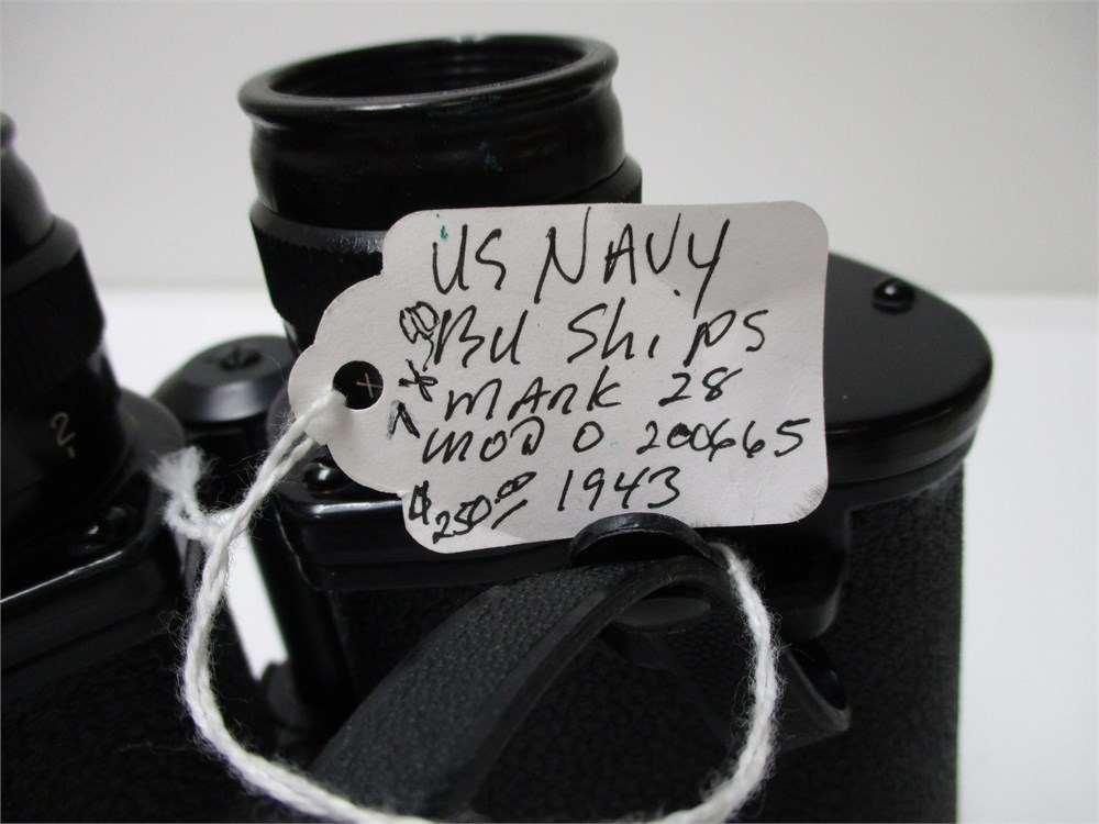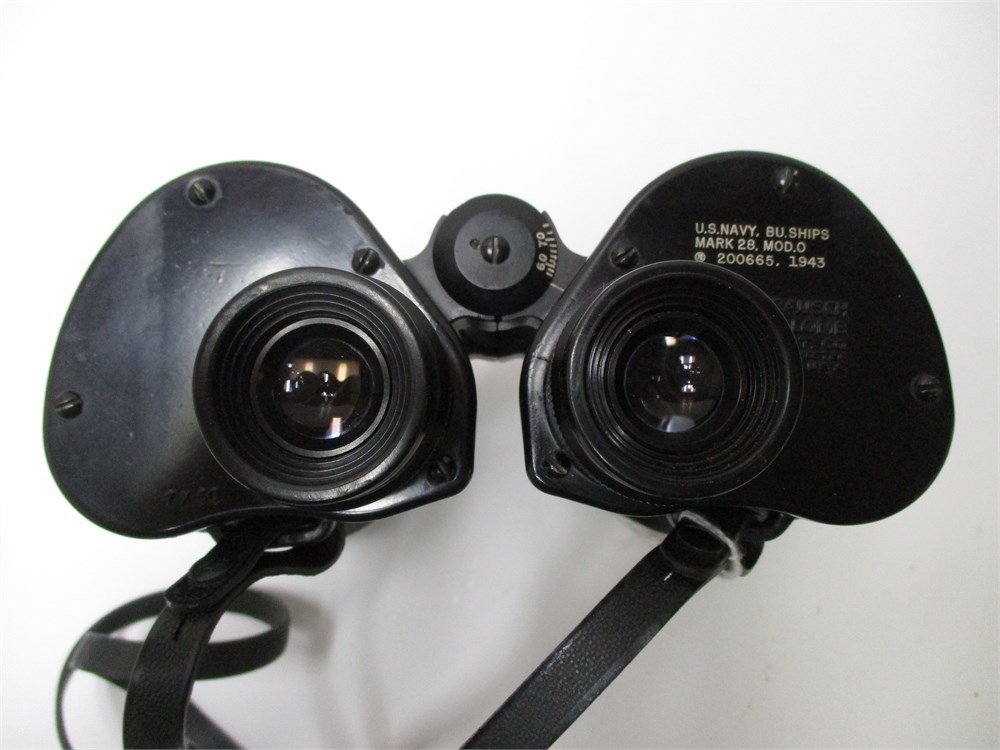 An awesome pair of Vintage, 1943, US NAVY, BU.SHIPS,7x50,Mark 28, MOD.O, 200665, in original case.  Lenses are clear.