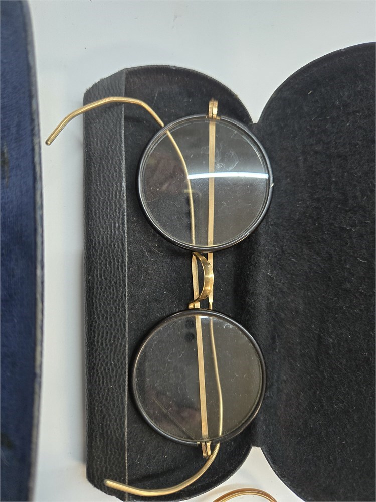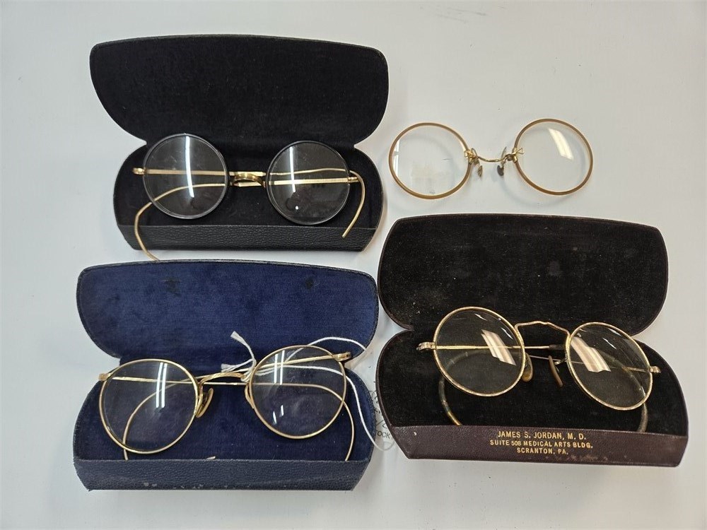 4 antique / vintage eyeglasses. 3 have cases and SOME ARE GOLD FILLED