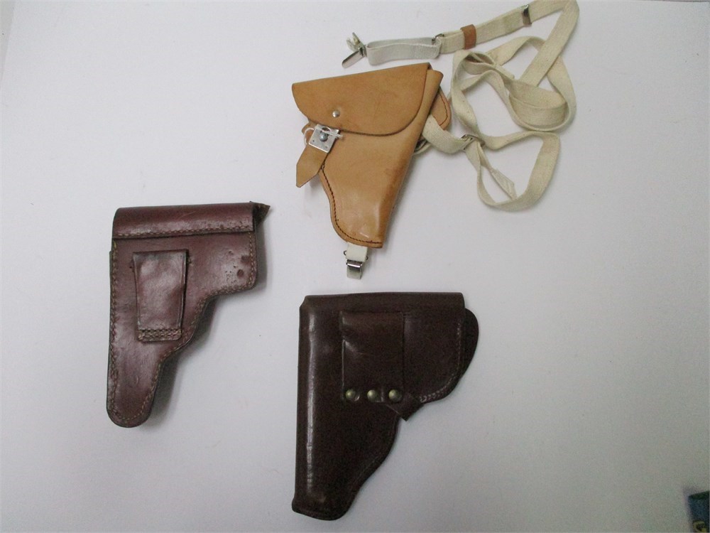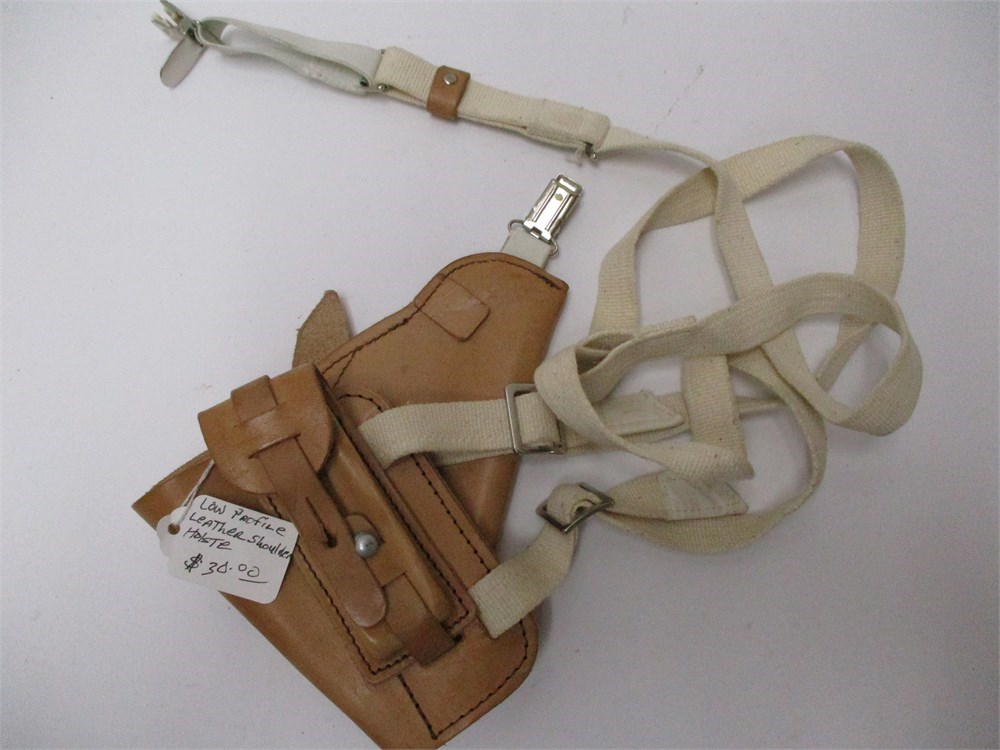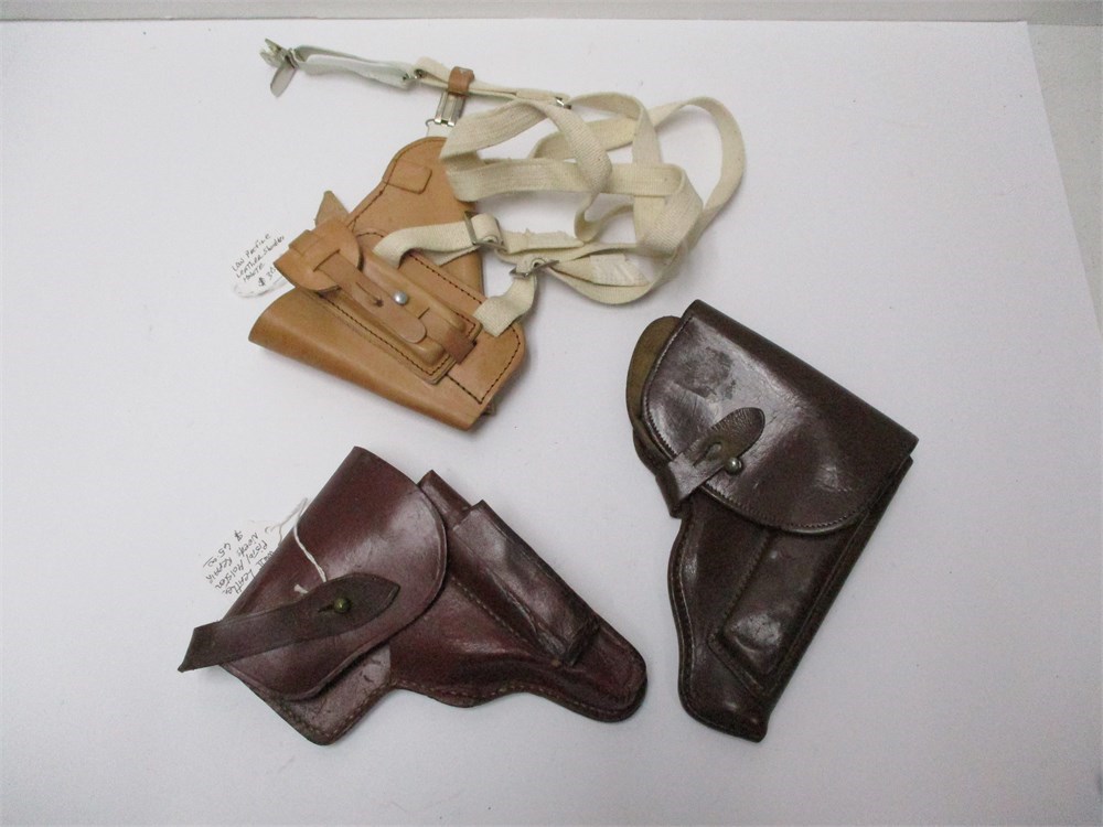 A very nice lot of 3 Holsters consisting of 2 WW11 Pistols Holster, one in need of repair as shown, and a Low Profile Shoulder Holster.  All in very nice used condition.