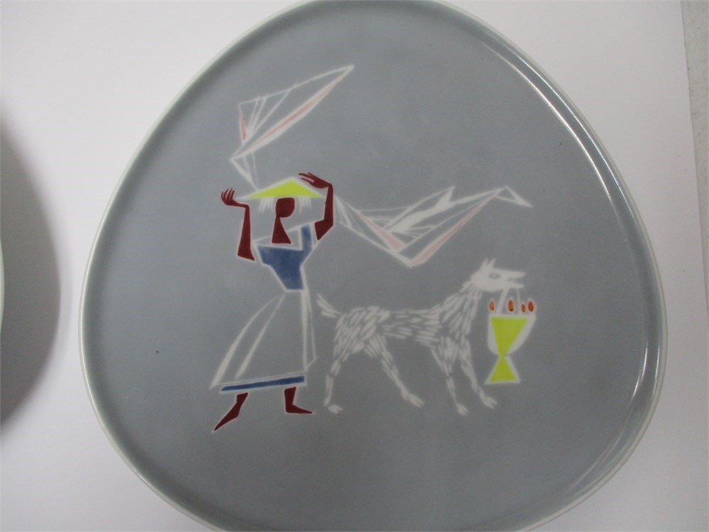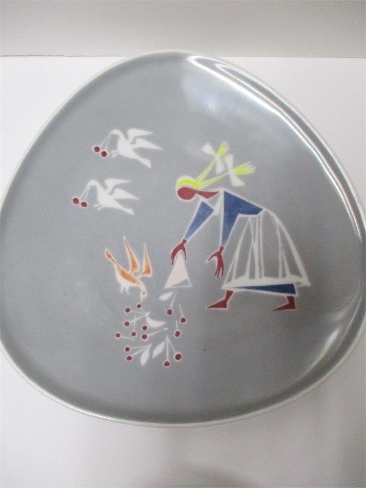 Lot of 6, MCM Triangular Porcelain Plates, Germany, Hilda Sandtner