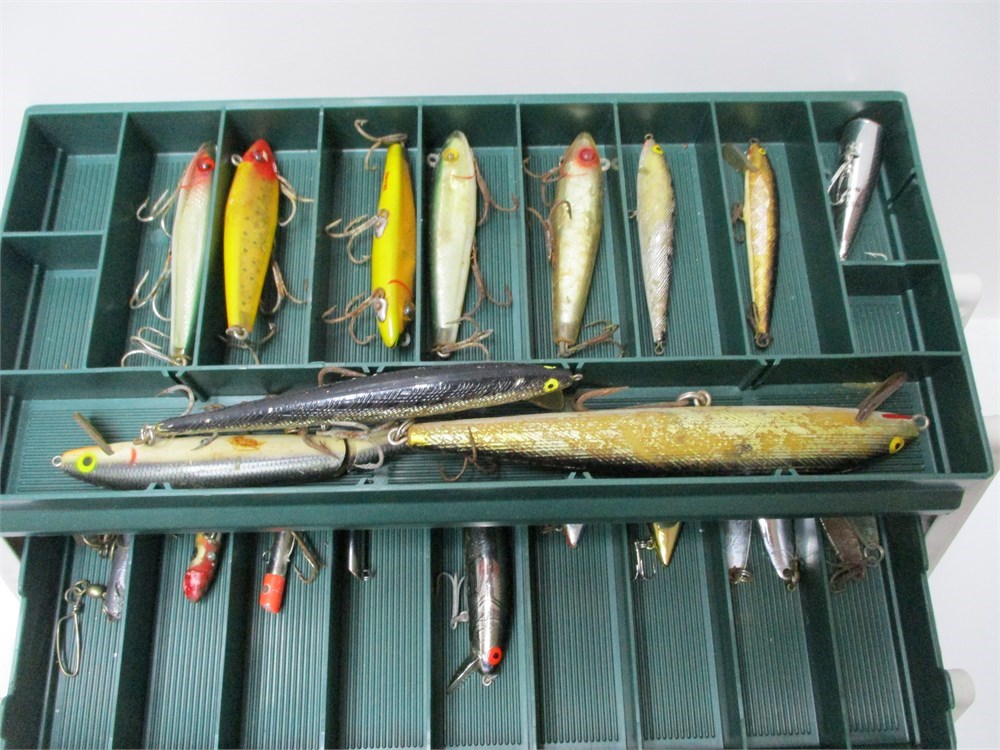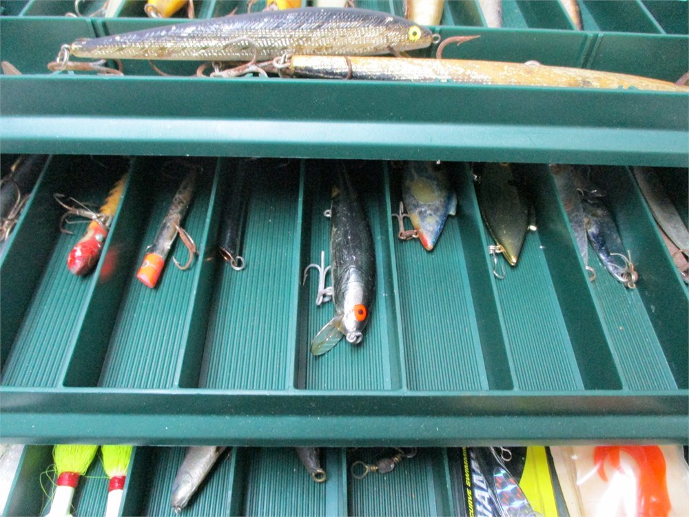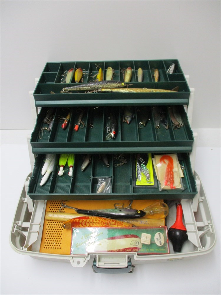 This is a Awesome Vintage Lot, Fishing Tackle Box- Saltwater to Fresh, with great choices of tackle. Filled with Lures all shapes and sizes,  Hooks,  Leaders, Weights.  All stored in a sturdy Plano Tackle System Box.  Great Lot!