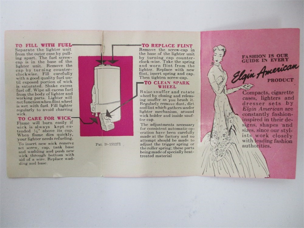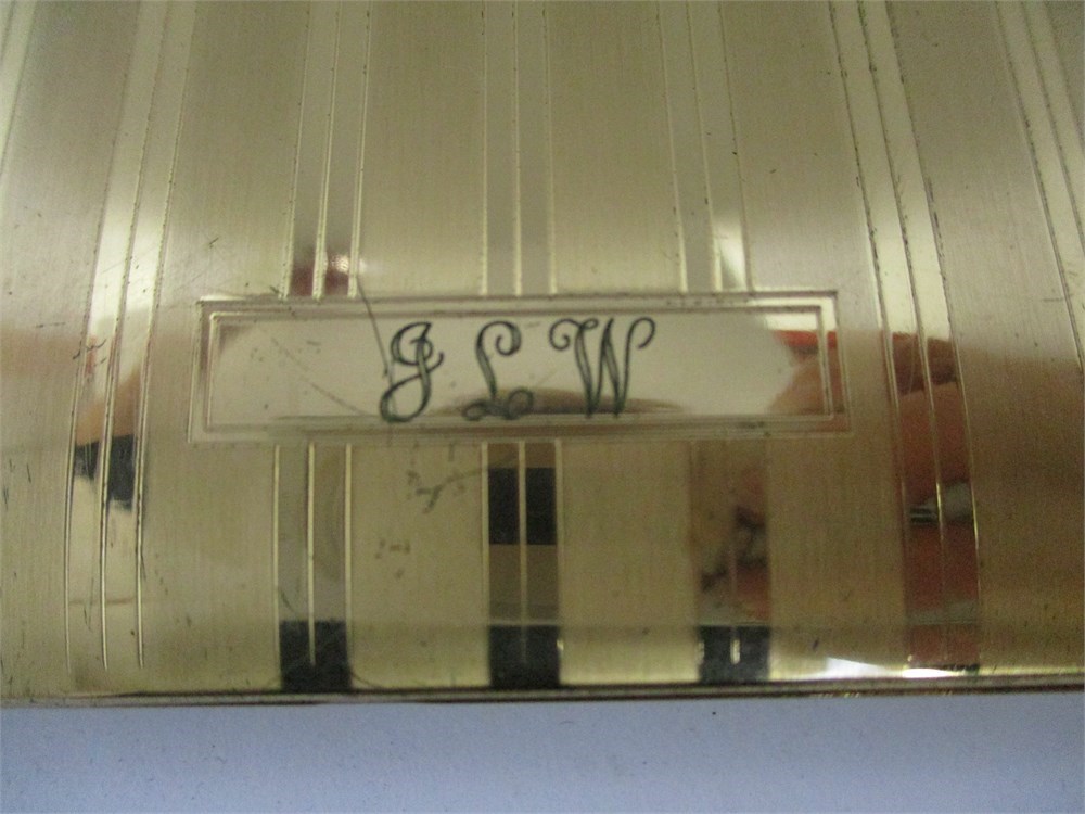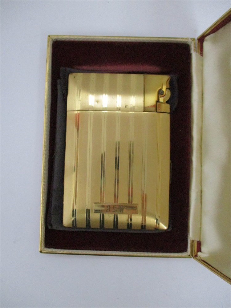 A wonderful vintage Elgin American Art Deco Lighter Cigarette Case in its Original Box and instruction booklet.  It is in very nice vintage condition with normal age related wear.   When you open the case with the side button the lighter will light automatically.  Great Elgin design.  It will need fluid but cannot guarantee working condition.  It is monogrammed "JLW".