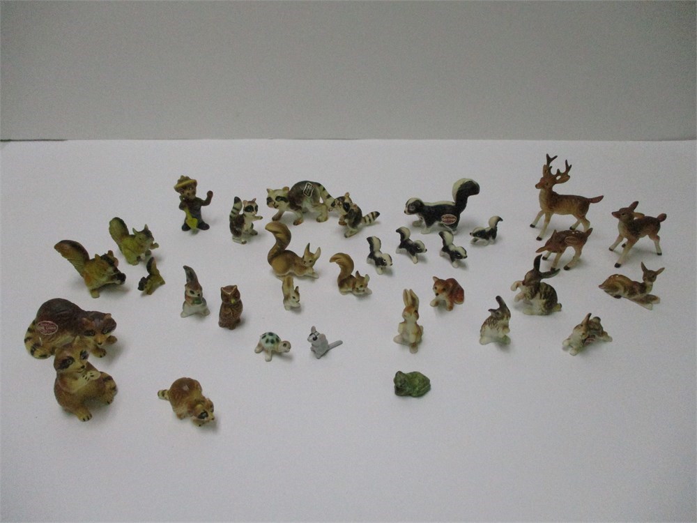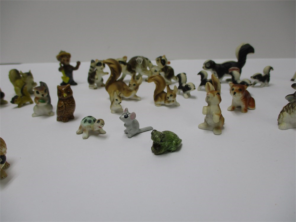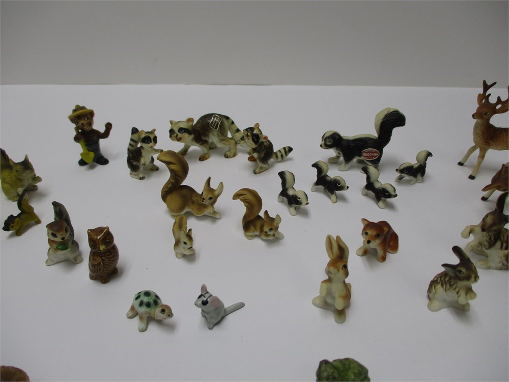 A wonderful vintage 32 piece lot of miniature woodland critterss, bone china and HK from Japan.  The lot includes a variety of woodland critters.  They are in wonderful condition and the colors and detail is great !  Measuring from .75" to 2.5" tall.