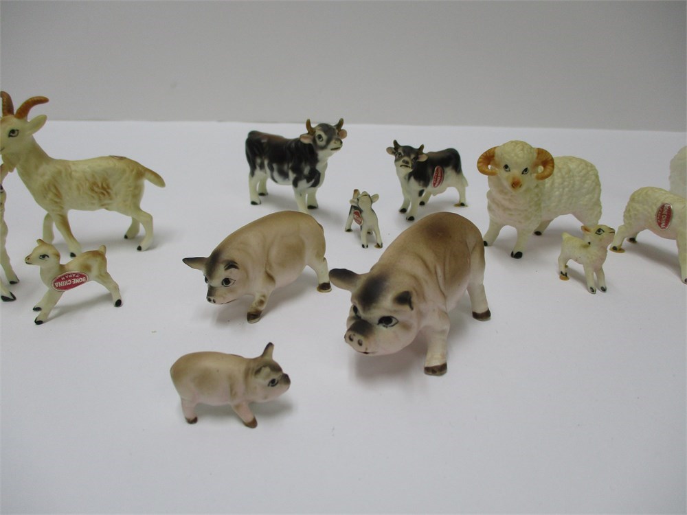 Vintage, 17 Pc. Lot, Bone China, Miniature Farm Animals, Lot F