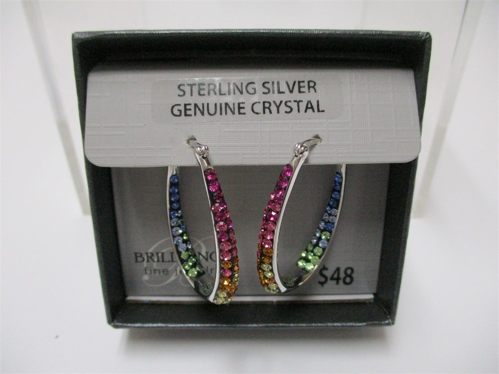 Brilliance, Sterling and Colored Genuine Colored Crystal Lever Back Oval Hoop Earrings.   Boxed and ready for gifting.