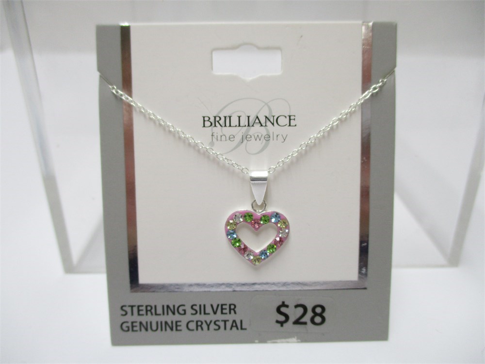 Brilliance, Sterling & Colored Crystal Heart Pendant Necklace with 18" chain.  Ready for gifting.