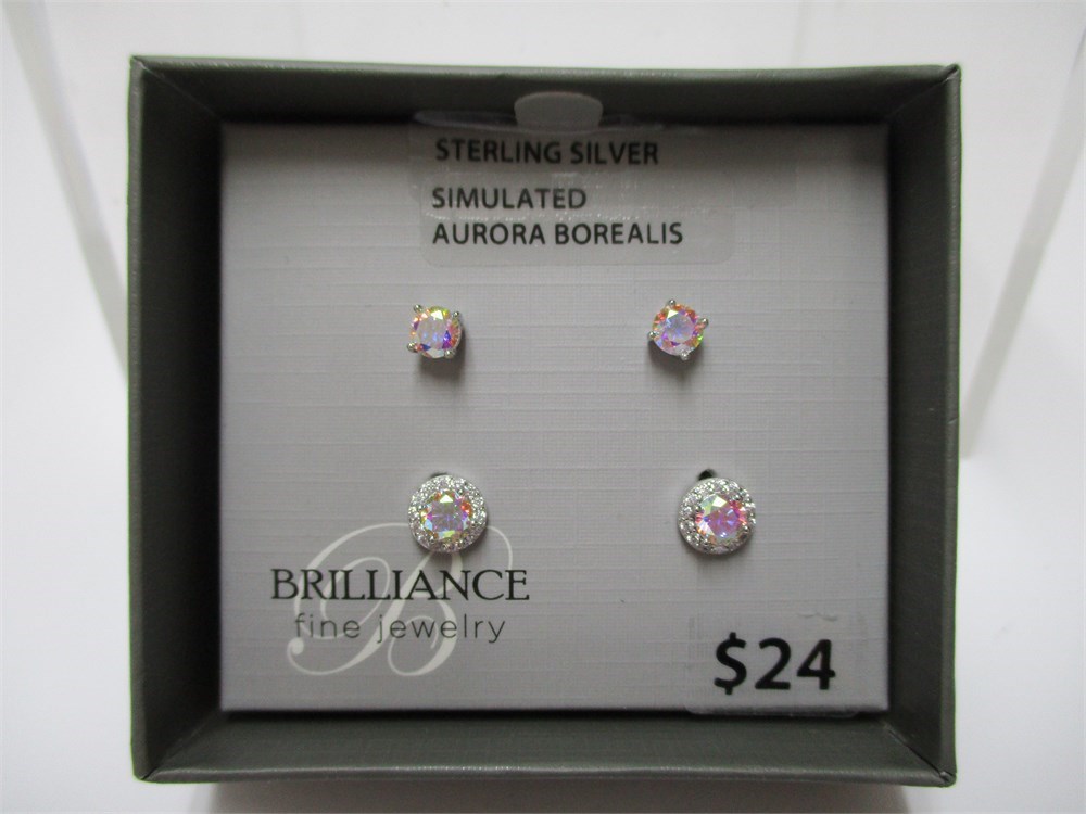 Brilliance, 2 Pairs, Sterling & Sim. Aurora Borealis & CZ, Stud Earrings # 17