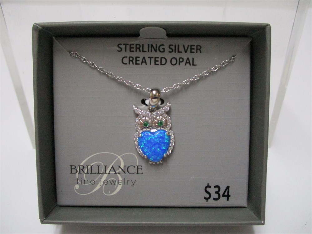 Brilliance, Sterling & Simulated Heart Shape Opal & CZ, Owl Pendant Necklace #23