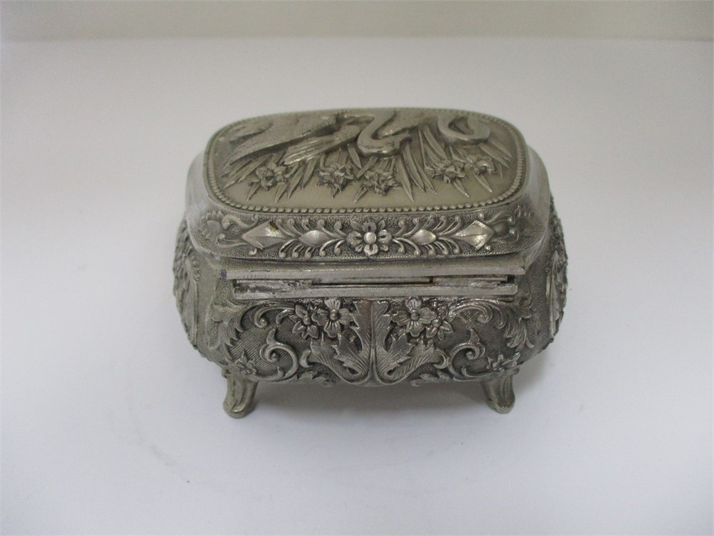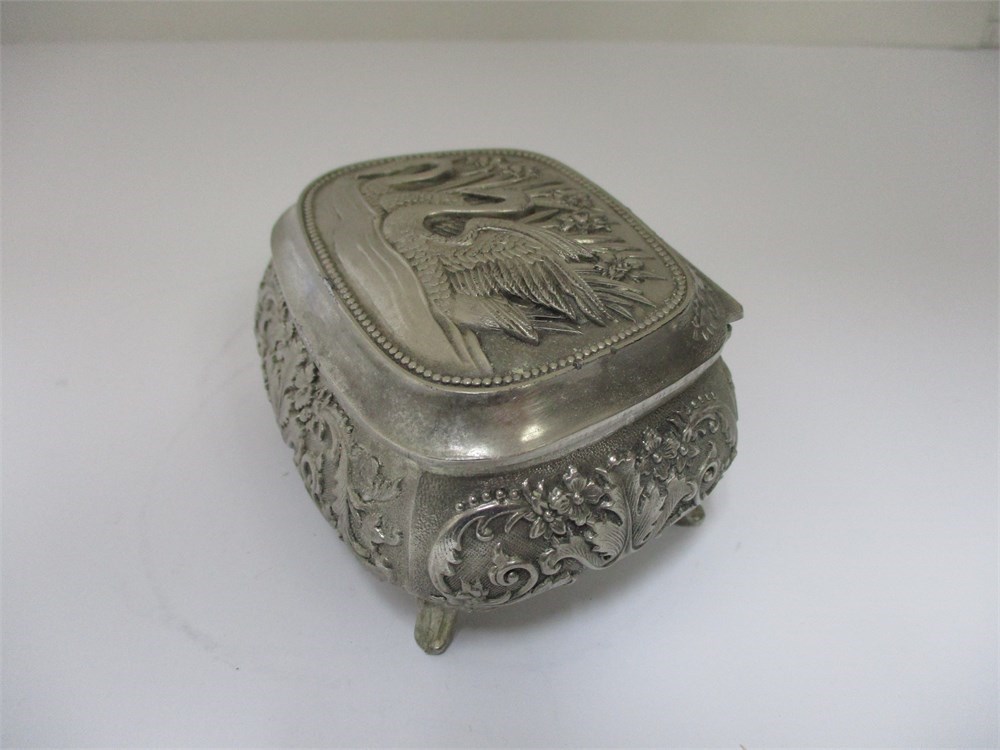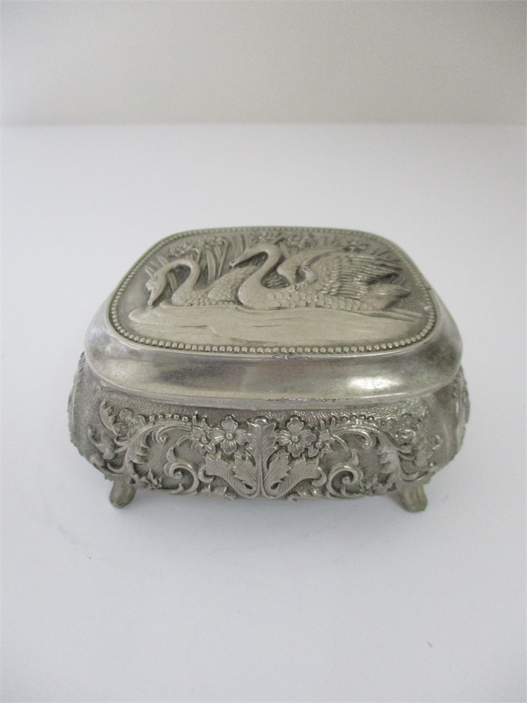 Vintage, Metal, Hinged Footed Trinket Box, Swans
