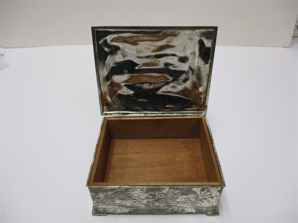 Vintage, Metal, Hinged, Wood Lined, Cigarette Box
