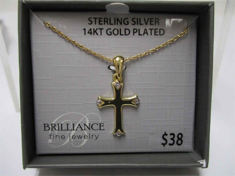 This is a Brilliance Sterling & 14KGP, Small Cross Pendant Necklace.  18" Chain. It is boxed and ready for gifting.