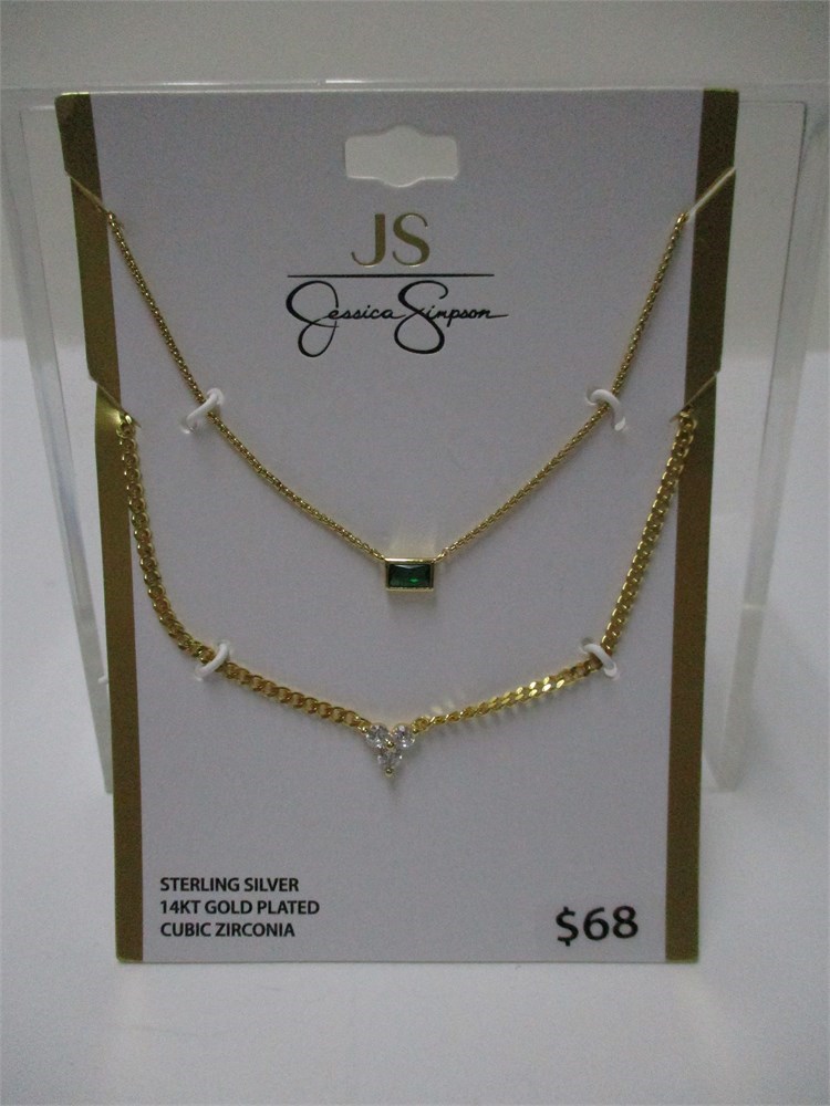Jessica Simpson, Sterling, CZ & 14KGP, Layered Necklace Set, #61