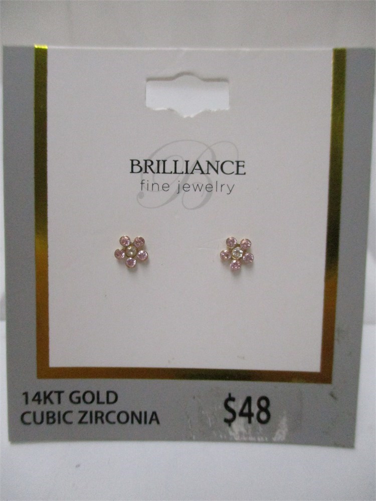 Brilliance, 14KT Yellow Gold & CZ, Small Flower Stud Earrings.  Surgical Steel Posts.  **Not recommended for children ages 3 and under.