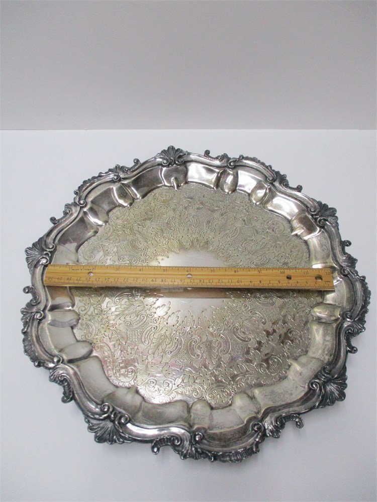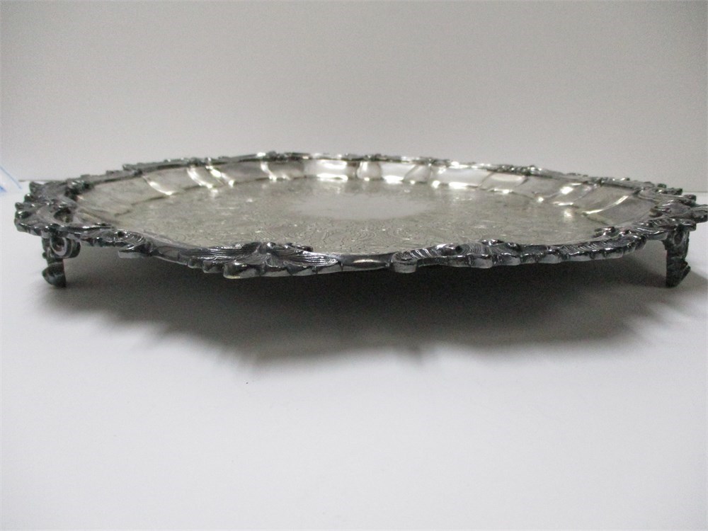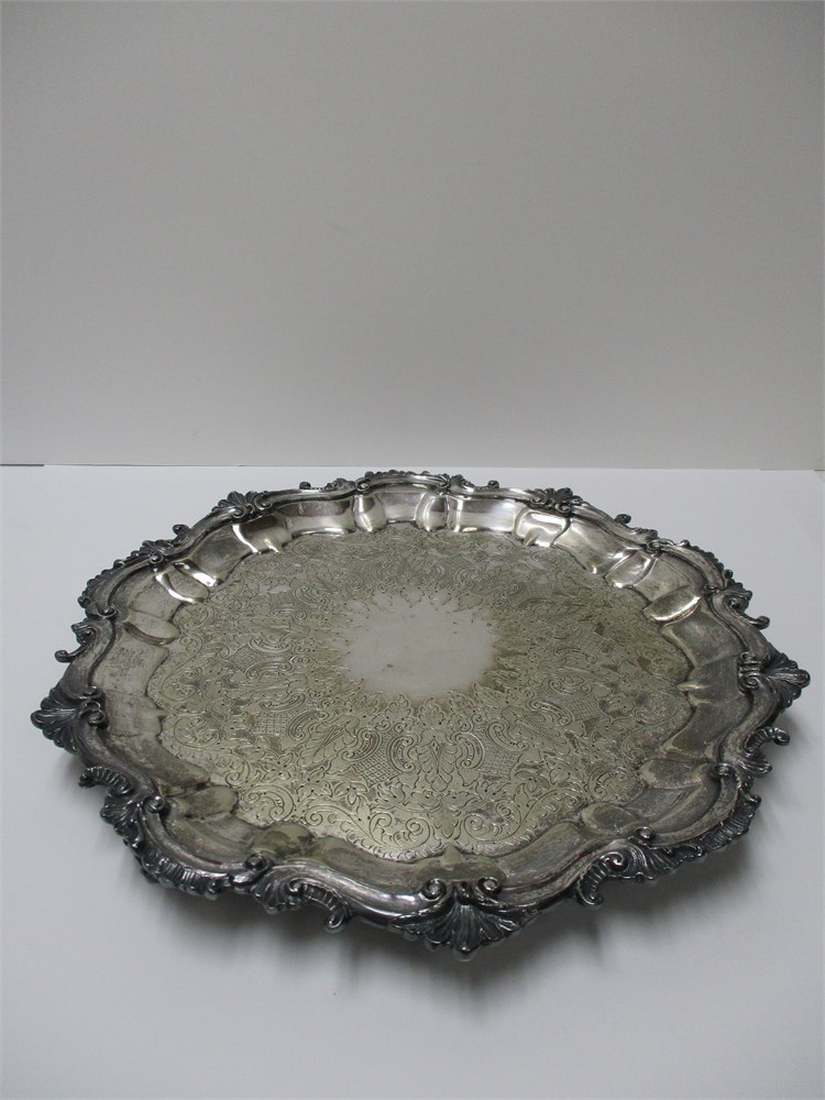 Antique, Barbour Silver Plate, Round, Footed Serving Tray