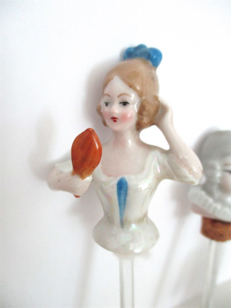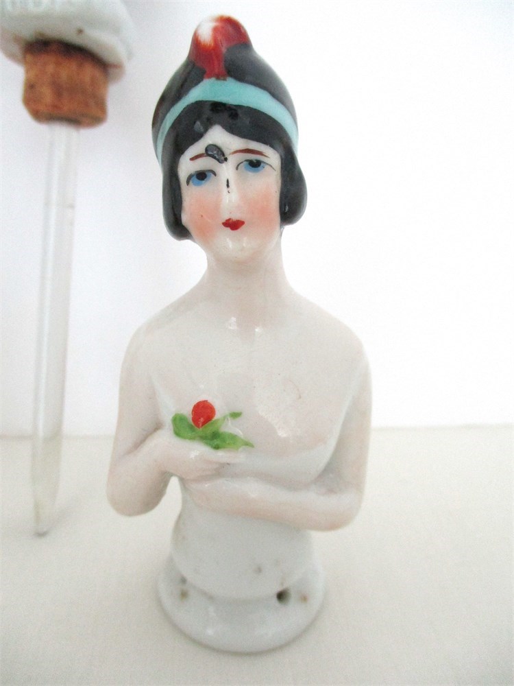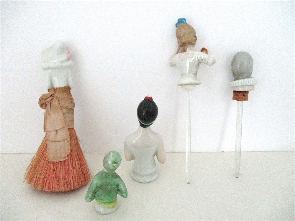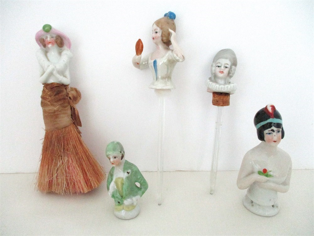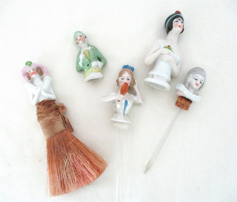 7 Piece Vintage Lot, Porcelain Pin Cushion Half Dolls