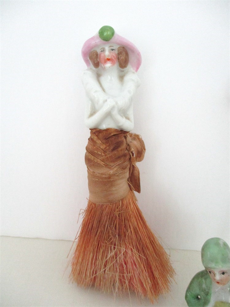 This is a wonderful 7 piece Vintage lot of Porcelain Pin Cushion Half Dolls.  Two of the Dolls are Perfume Daubers and the Daubers are in fabulous condition.  One of the Dolls has a brush skirt and the top of the skirt is wrapped in ribbon.  The Flapper Doll is marked Germany,  The smaller one is also a Flapper Doll.  All are in very nice vintage condition with only normal age related wear.  The Dauber Girls measure 6" & 4.75" long.  The Girl with the brush skirt measures 5.25" tall.  The Flapper Dolls measure 3.25" & 2.25".  Nice colors and detail on all!