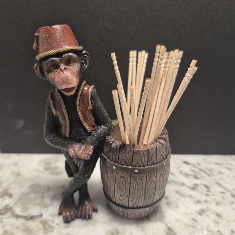 Vintage Fez Monkey toothpick holder ~ resin Austria ?