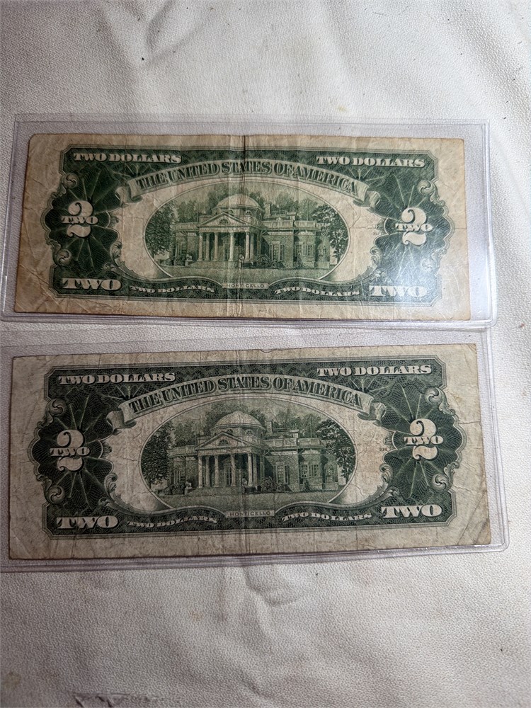 Two dollar United States note series of 1928D both in plastic