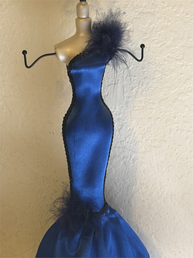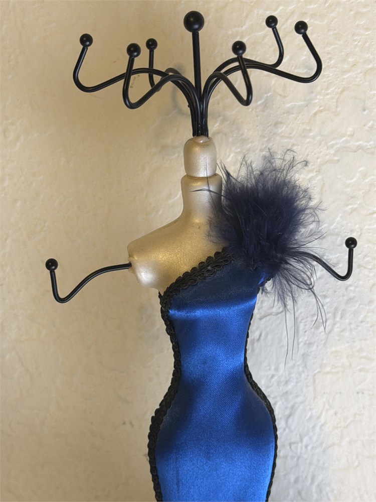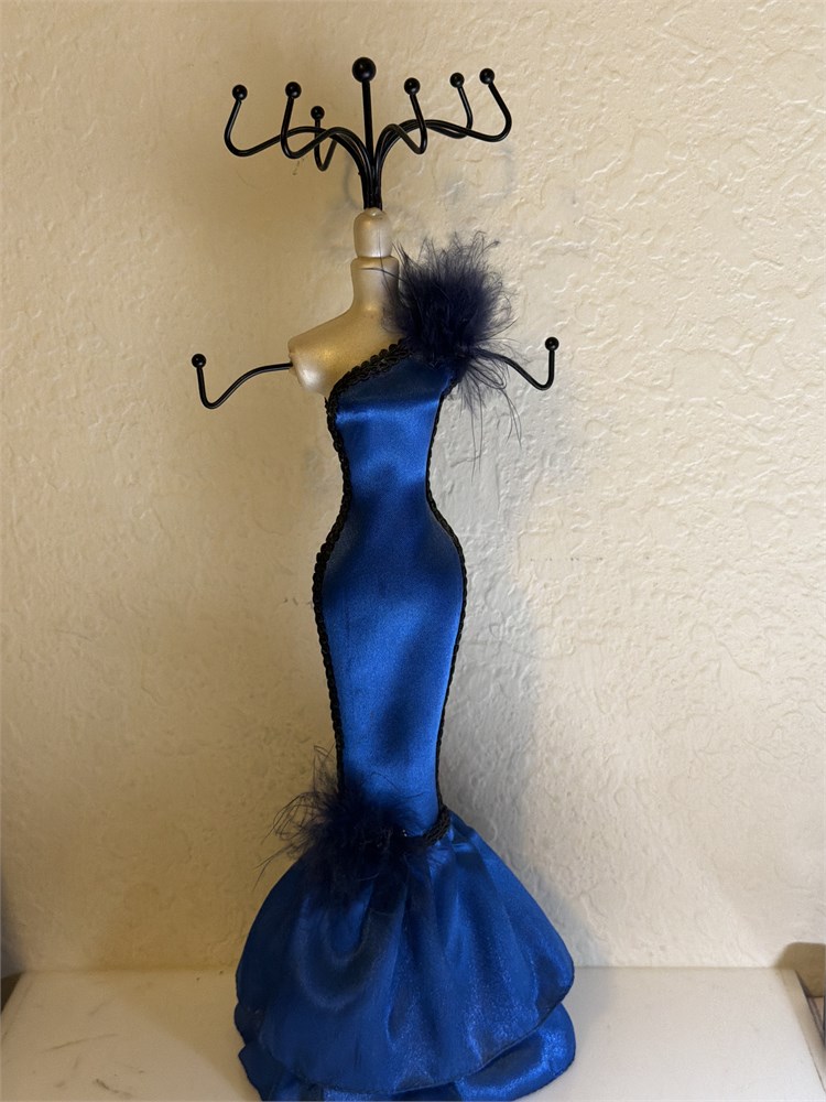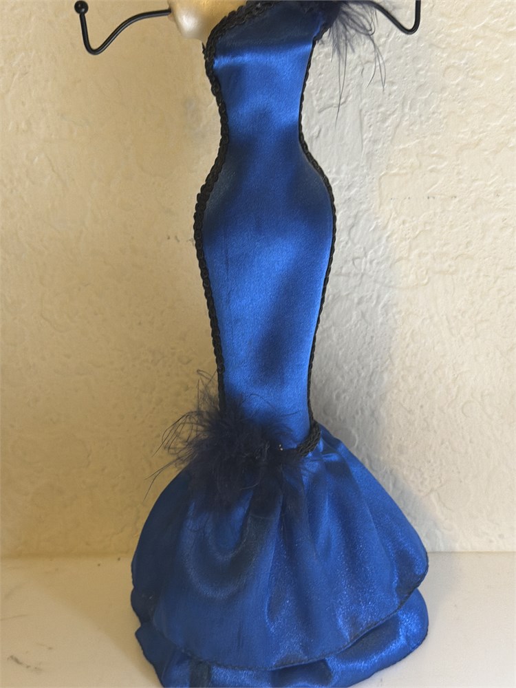 Mannequin Jewelry Stand Organizer Necklace Bracelet Blue Dress(L)