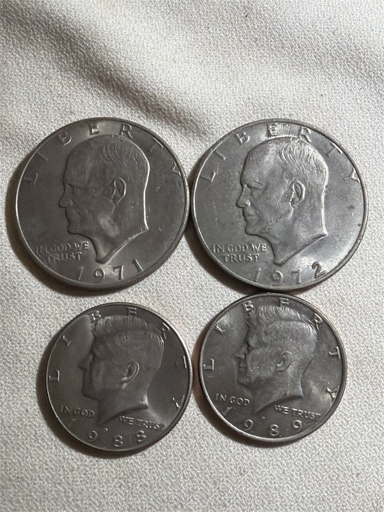 Eisenhower dollars 1971 1972 Kennedy half dollars 1988 1989