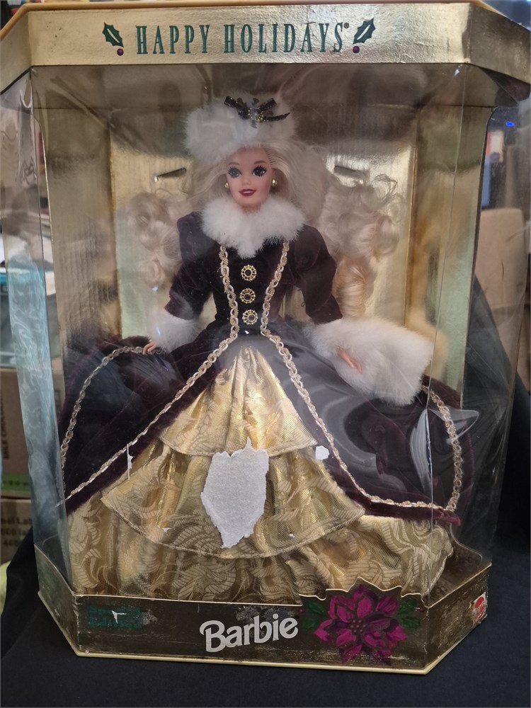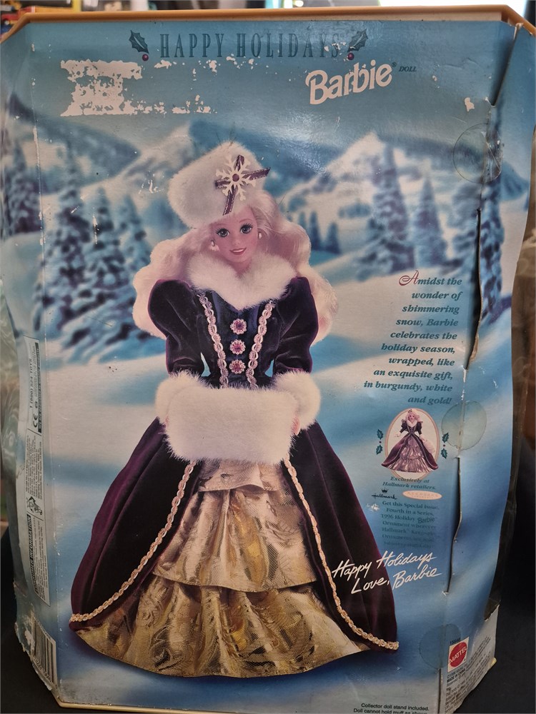 Happy holidays, barbie doll comes in.Original box box is in a fair condition.Doll was produced in 1996.
