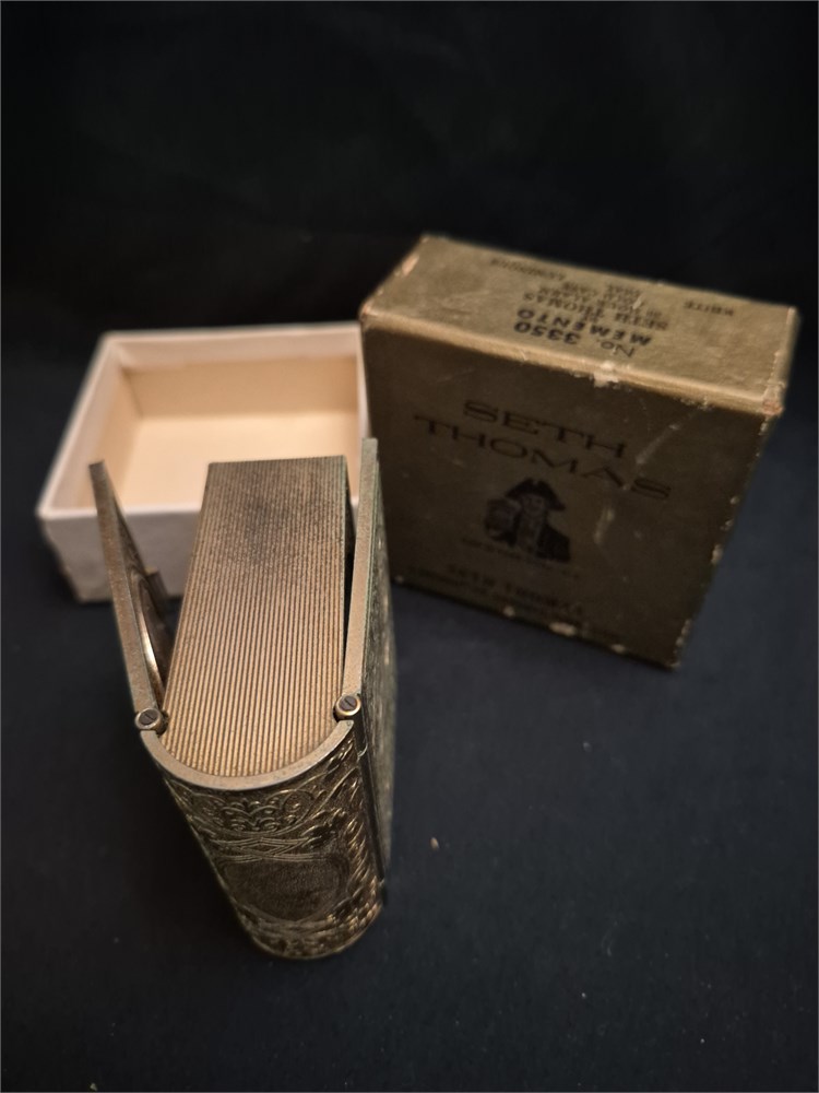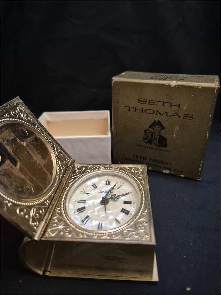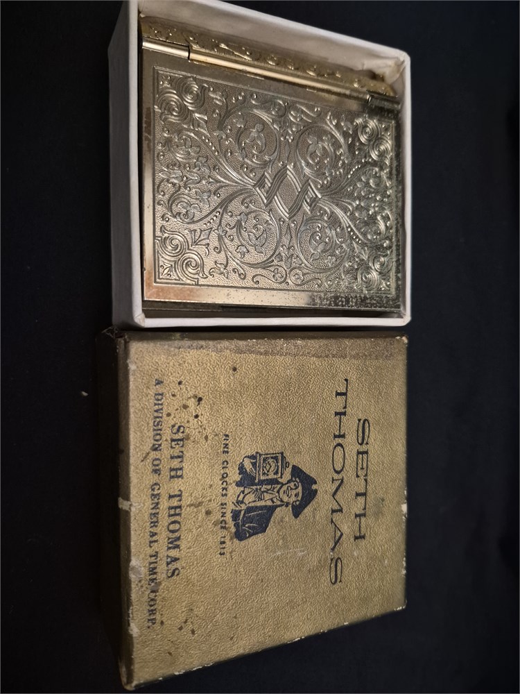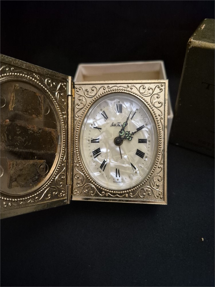 Vintage Seth Thomas Germany Wind Up Mechanical Travel Alarm Clock with original box.